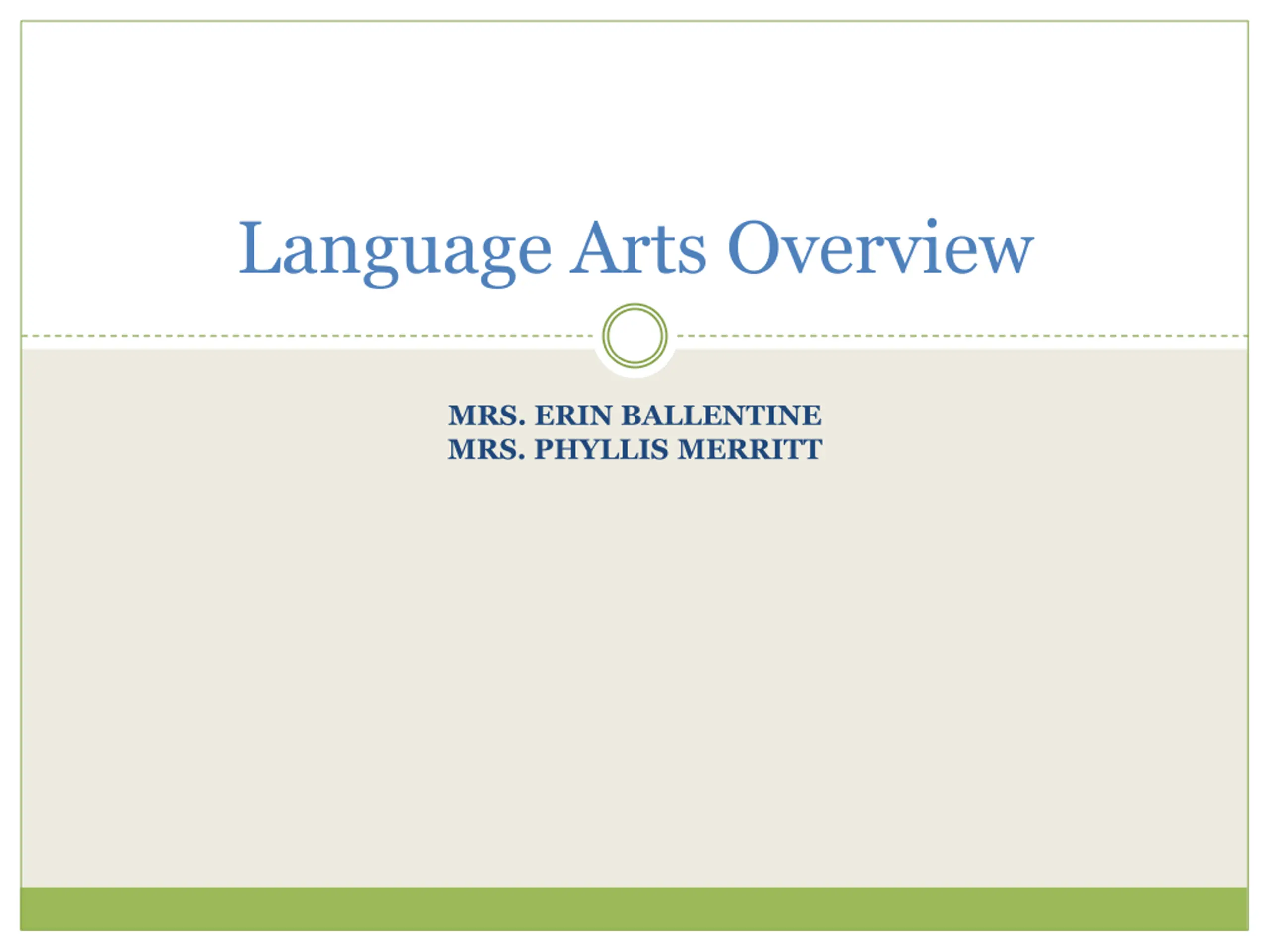 Language Arts Overview MRS. ERIN BALLENTINE MRS. PHYLLIS MERRITT