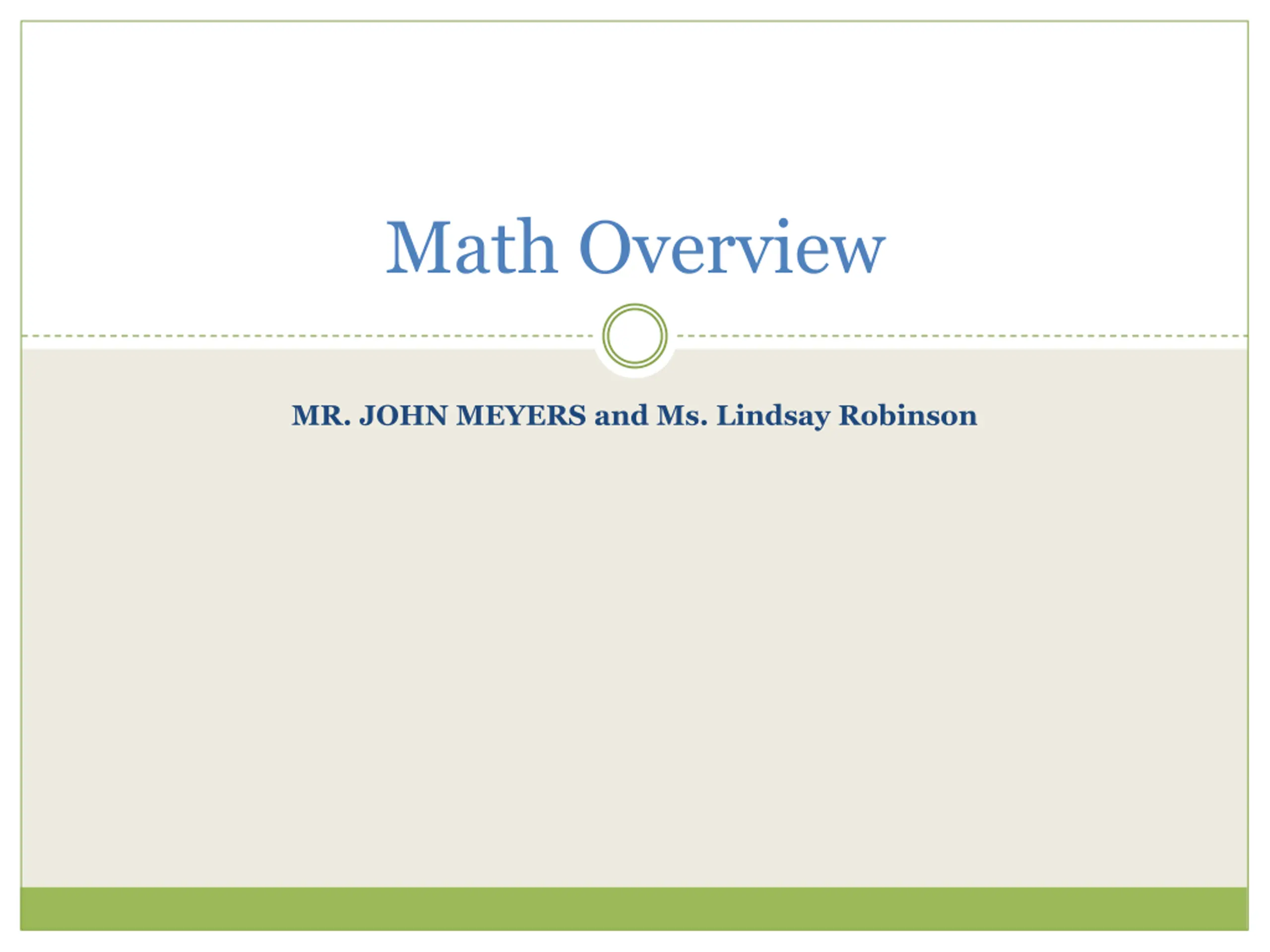 Math Overview MR. JOHN MEYERS and Ms. Lindsay Robinson