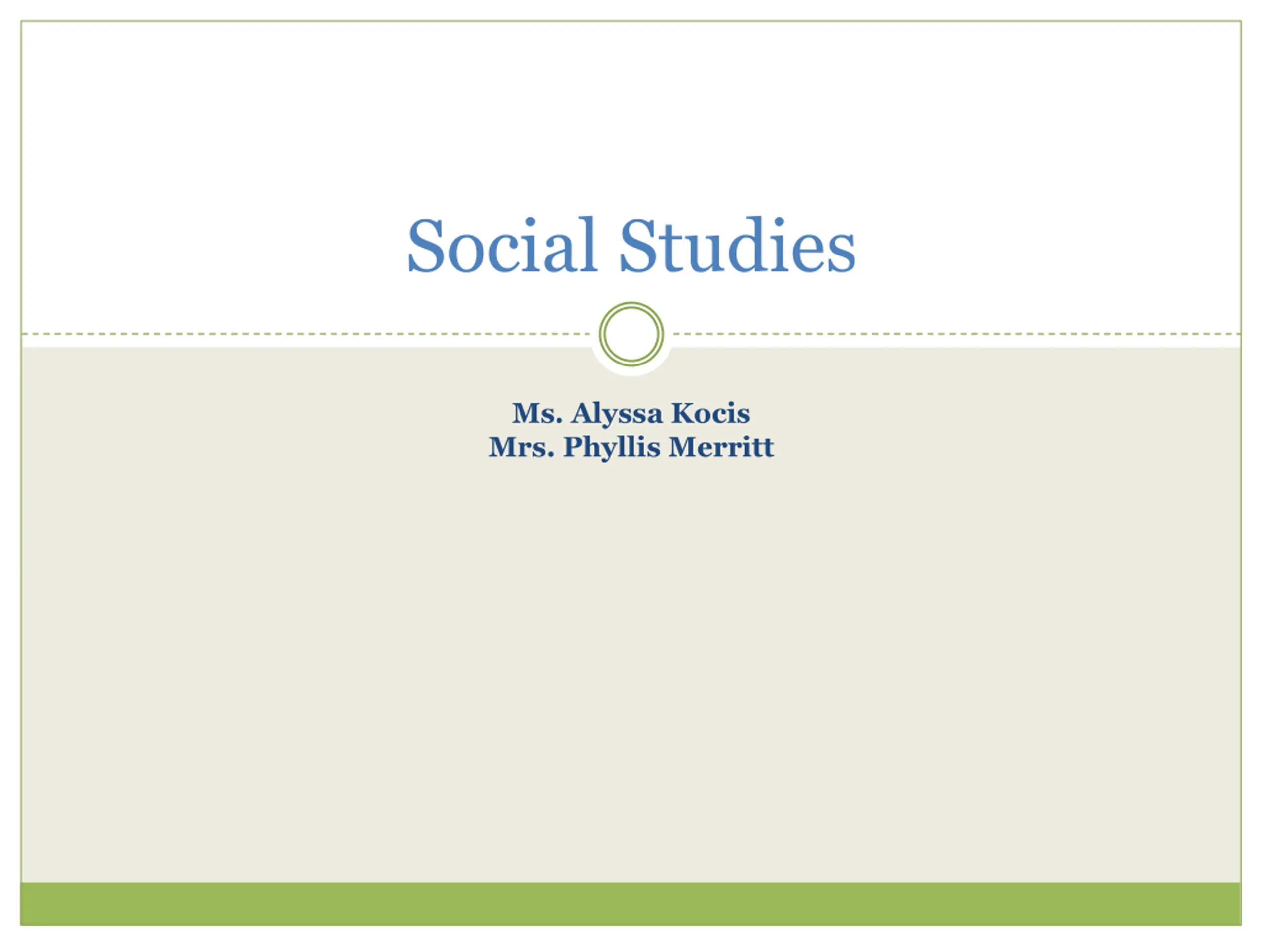 Social Studies Ms. Alyssa Kocis Mrs. Phyllis Merritt