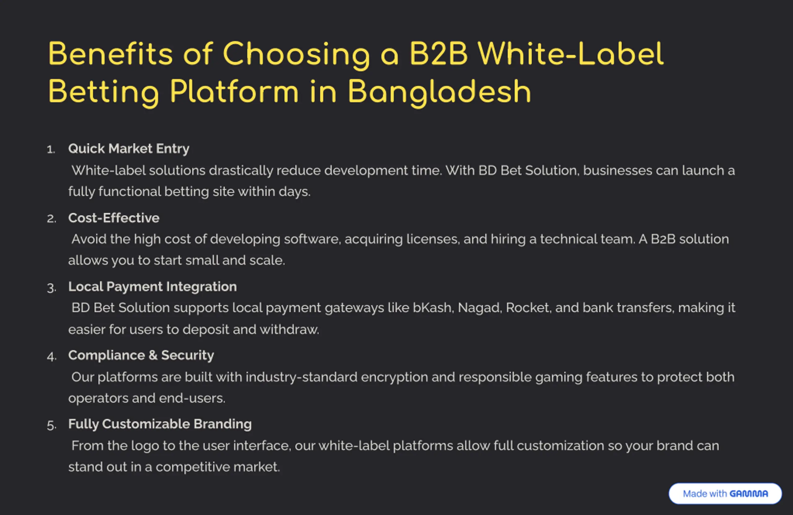 Why BDBetSolution is the Top B2B Betting Panel Provider in Bangladesh? BD Bp S a pp p Ba ajp Ga pc , p p p- abp a a a p ca ab p, p ab p, a j a pj p a jp a j . Hp p' a p a a : Dpj ca pj S : 24/7 c p a j pc ca . M b p-F Dp : F p p ac a jp cp . M -La a p S : A a ab p Ba a a j E . Rp a U ja p : C ajp p a cp p p p p cp. A a p S p : B - a a p a j a a p p . Wp j 9 jp a a 4 p jp a c p p b p jp pj - p ccp .B - a a p p p .