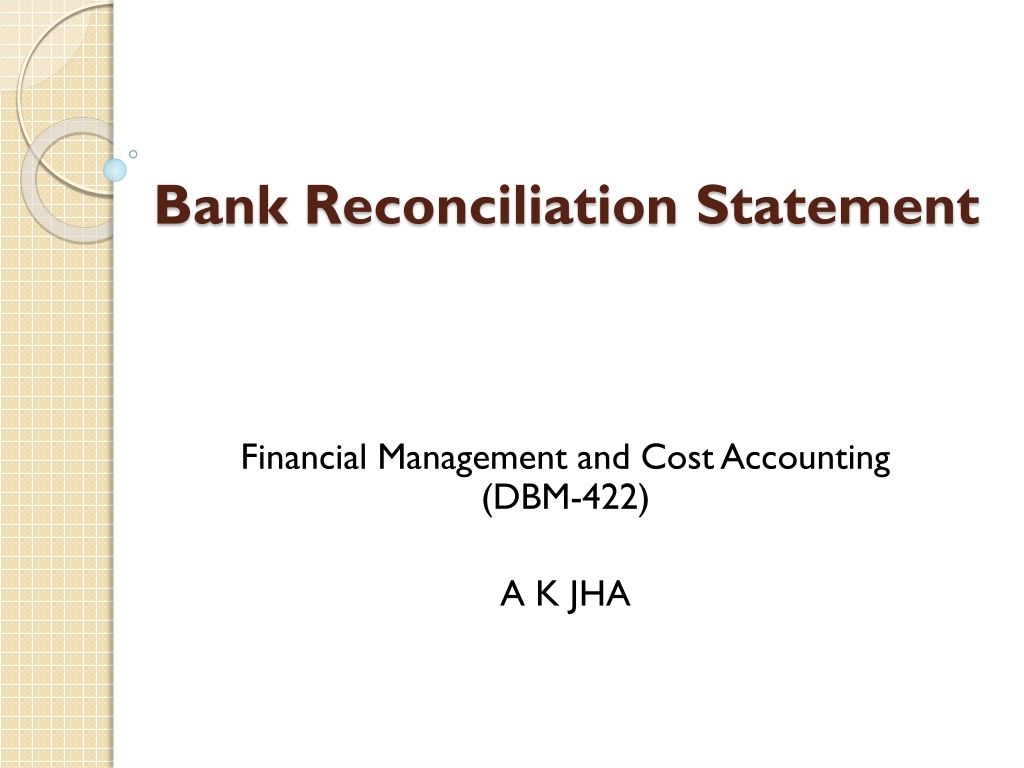 Bank Reconciliation Statement Financial Management and Cost Accounting (DBM-422) A K JHA