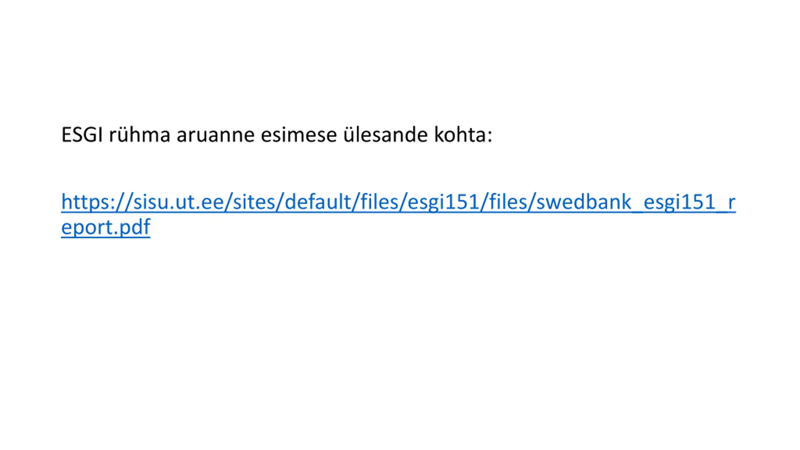 ESGI rhma aruanne esimese lesande kohta: https://sisu.ut.ee/sites/default/files/esgi151/files/swedbank_esgi151_r eport.pdf