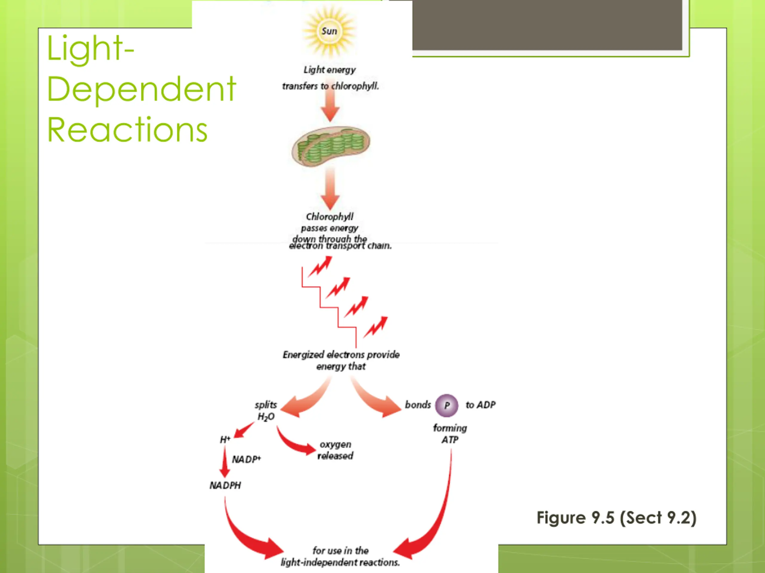Light- Dependent Reactions Figure 9.5 (Sect 9.2)