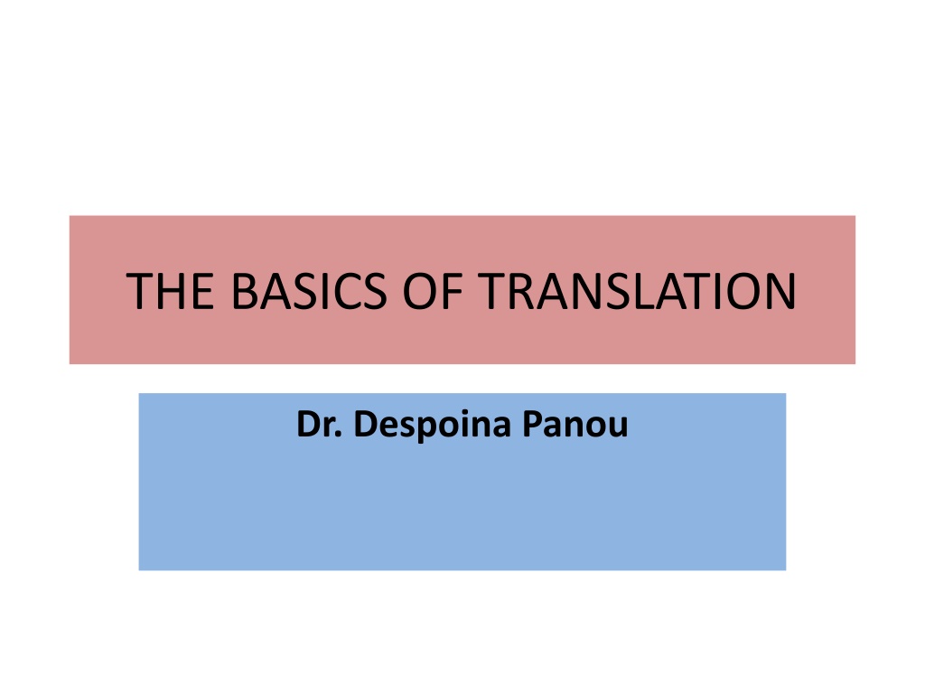 THE BASICS OF TRANSLATION Dr. Despoina Panou