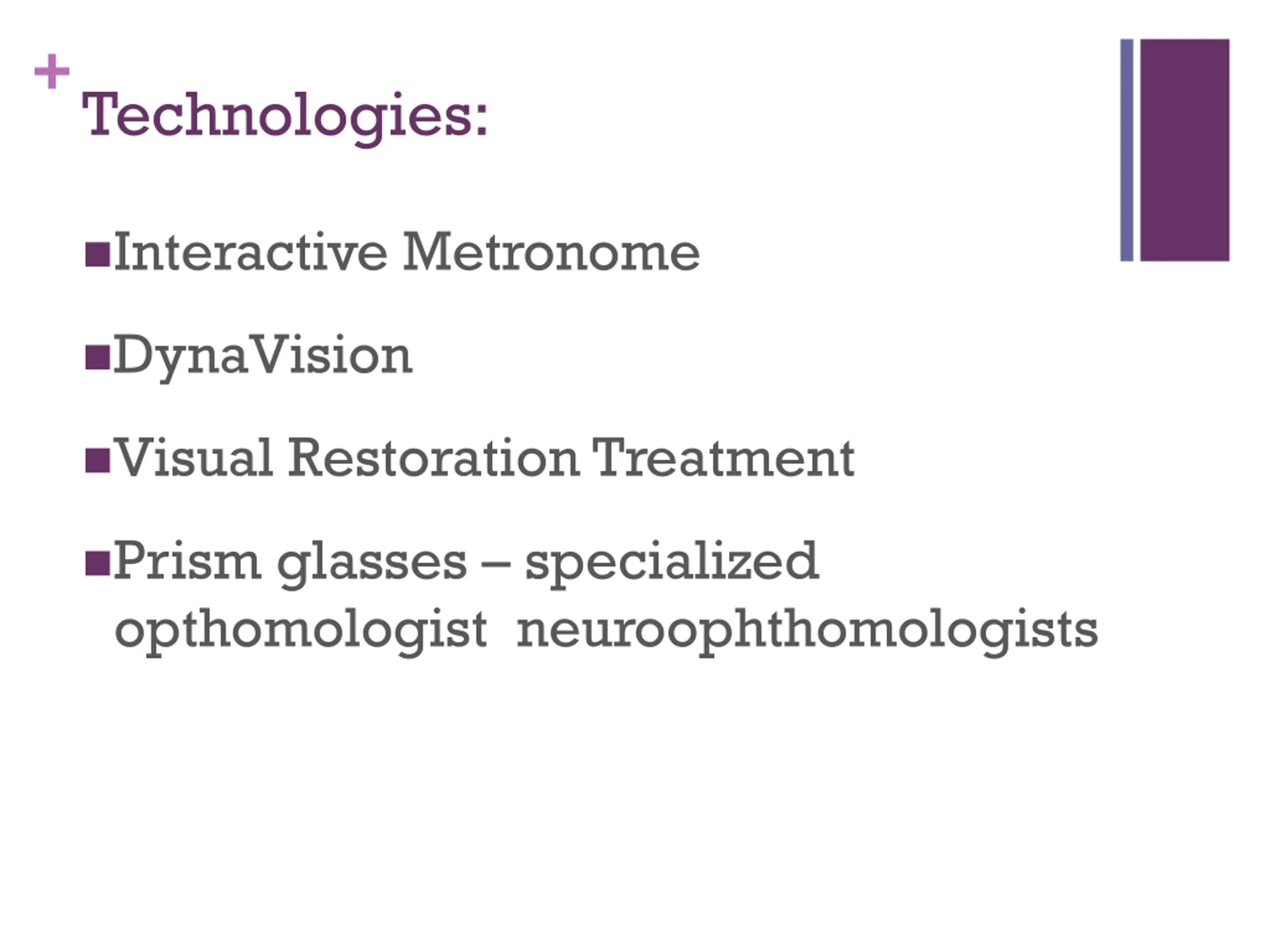 +Technologies: Interactive Metronome DynaVision Visual Restoration Treatment Prism glasses specialized opthomologist neuroophthomologists