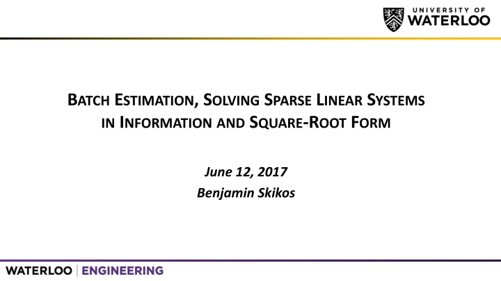 BATCH ESTIMATION, SOLVING SPARSE LINEAR SYSTEMS IN INFORMATION AND SQUARE-ROOT FORM June 12, 2017 Benjamin Skikos