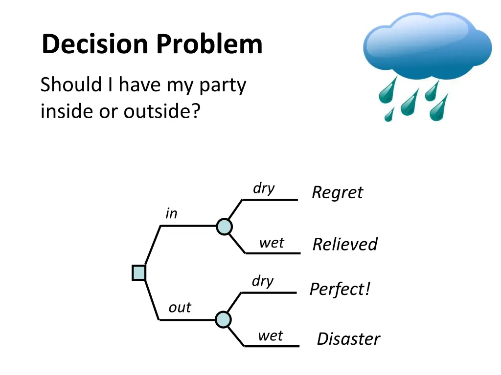 Decision Problem Should I have my party inside or outside? dry Regret in wet Relieved dry Perfect! out wet Disaster