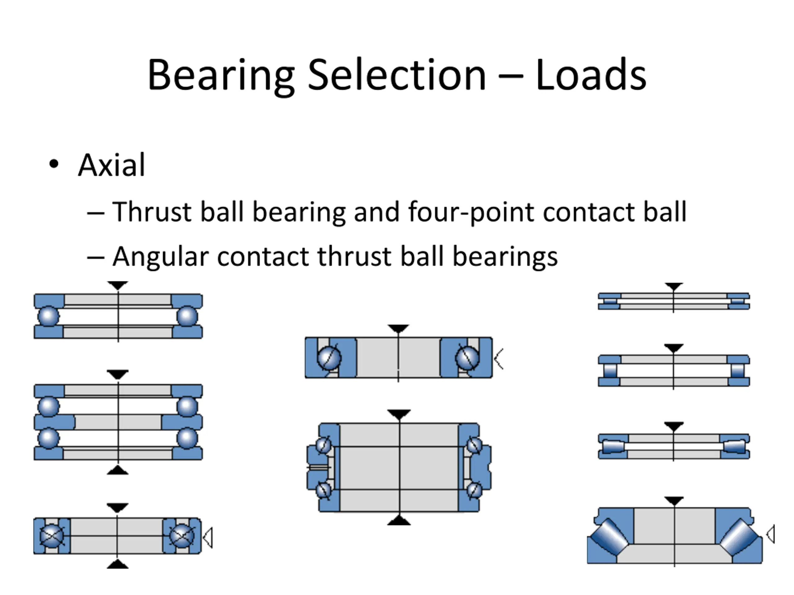 Bearing Selection Loads Axial Thrust ball bearing and four-point contact ball Angular contact thrust ball bearings