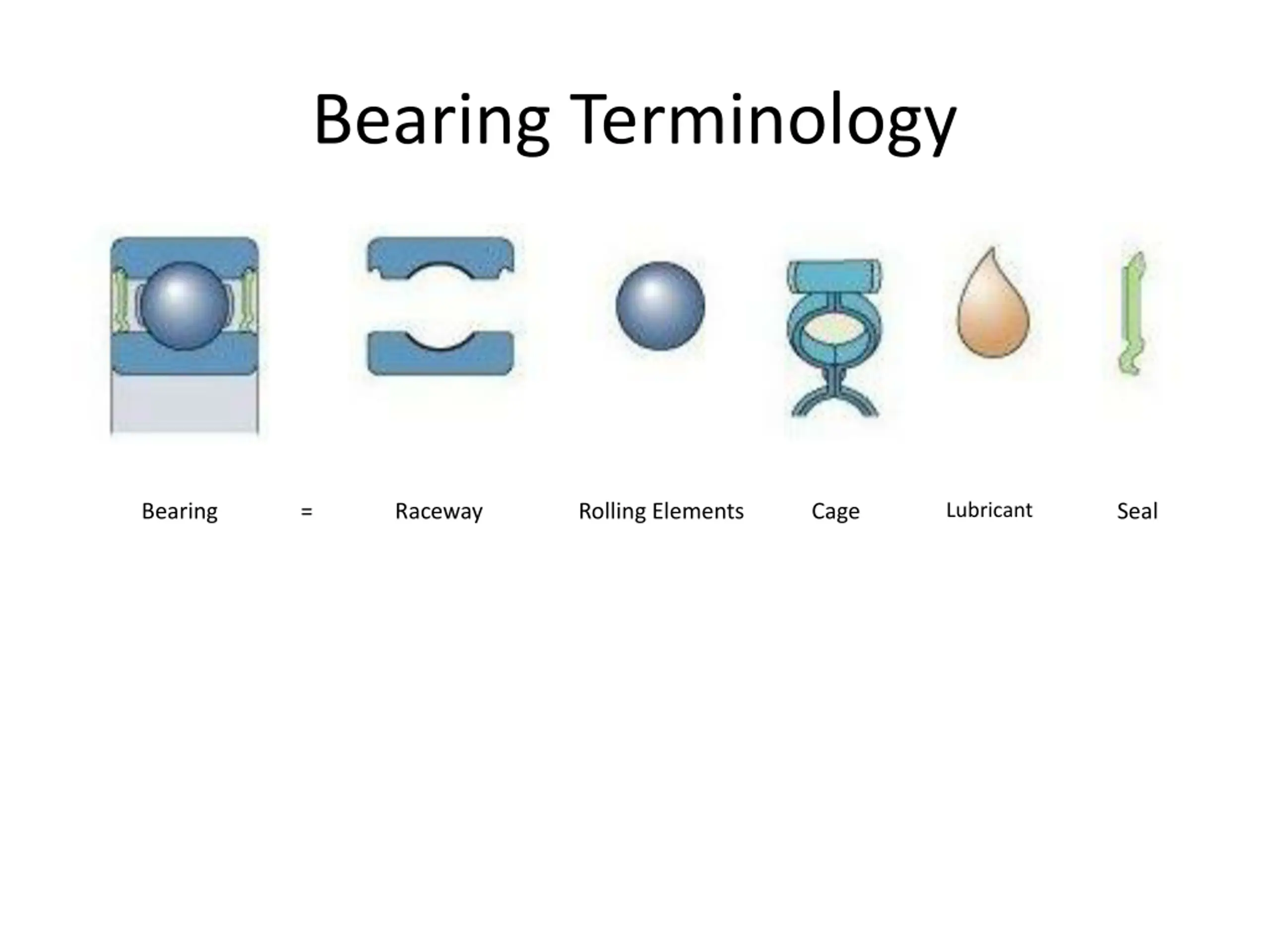 Bearing Terminology Lubricant Bearing = Raceway Rolling Elements Cage Seal