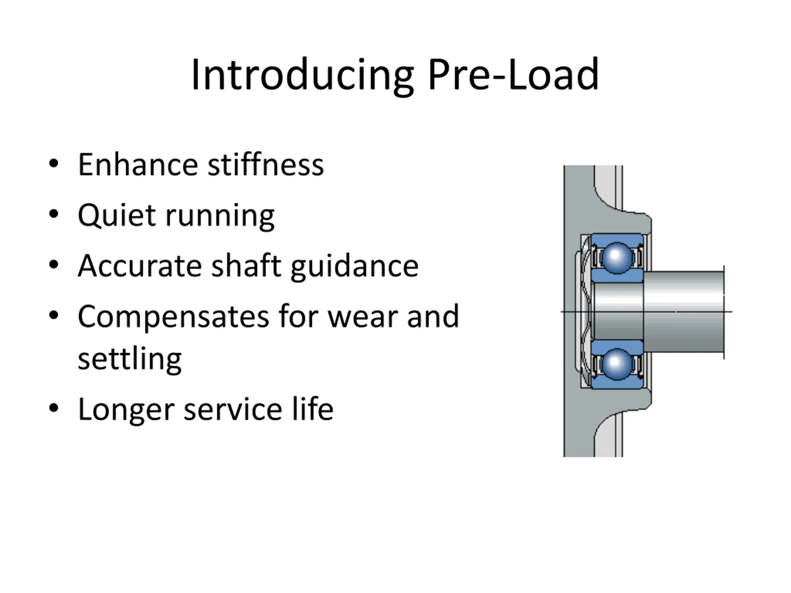 Introducing Pre-Load Enhance stiffness Quiet running Accurate shaft guidance Compensates for wear and settling Longer service life