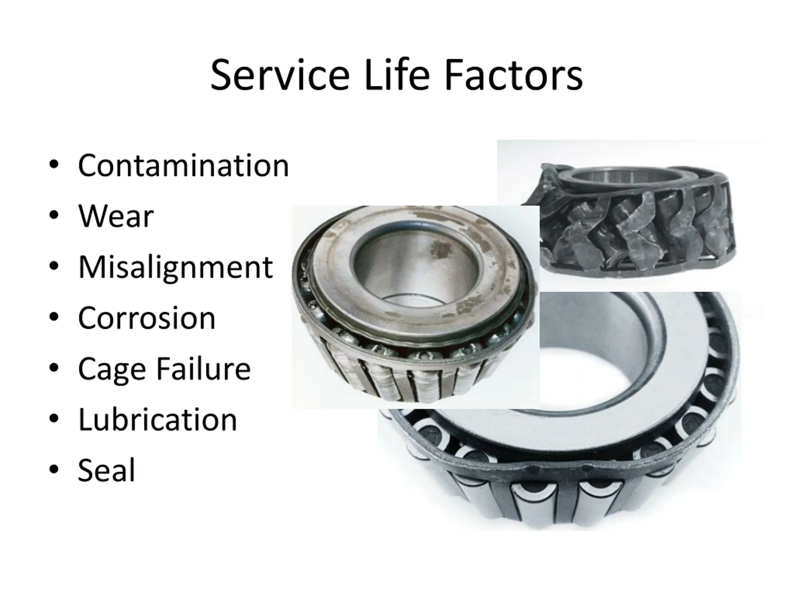 Service Life Factors Contamination Wear Misalignment Corrosion Cage Failure Lubrication Seal