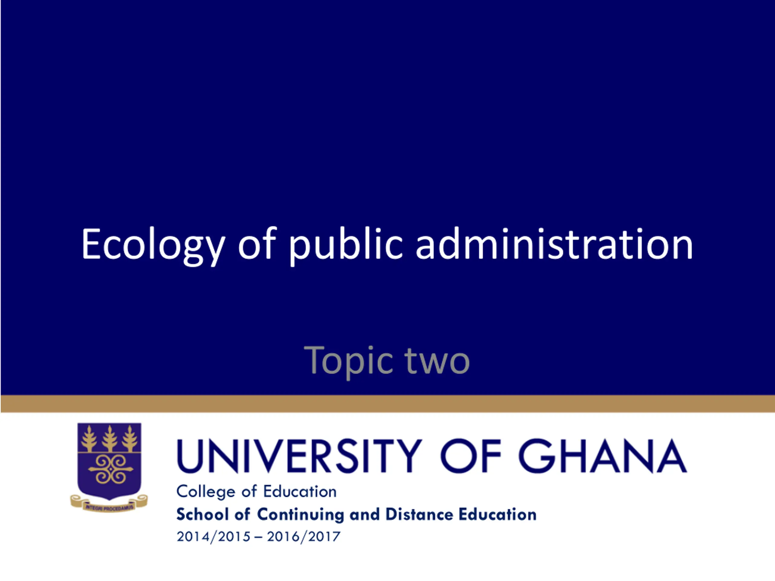 Ecology of public administration Topic two College of Education School of Continuing and Distance Education 2014/2015 2016/2017