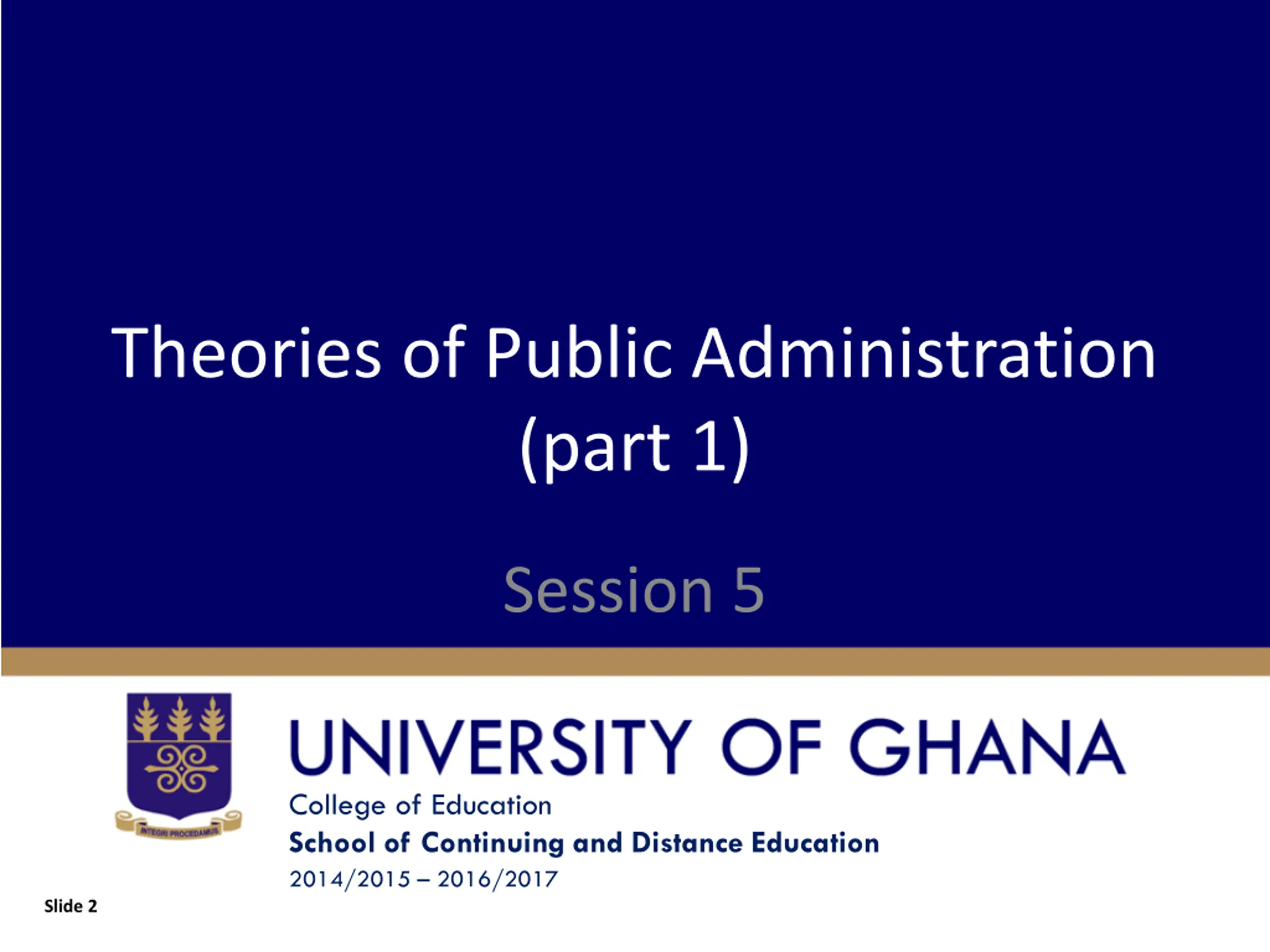 Theories of Public Administration (part 1) Session 5 College of Education School of Continuing and Distance Education 2014/2015 2016/2017 Slide 2