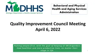 Behavioral and Physical Health and Aging Services Administration Quality Improvement Council Meeting February 1, 2023 Putting people first, with the goal of helping all Michiganders Putting people first, with the goal of helping all Michiganders lead healthier and more productive lives, no matter their lead healthier and more productive lives, no matter their stage in life. stage in life. 1