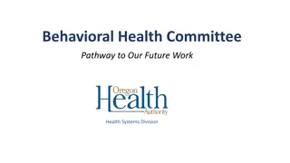 Agenda 1. Welcome and Introductions (10:00-10:05) 2. Behavioral Health Updates (10:05-11:00) 3. Workgroup Updates (11:00-11:45) 4. Promising Practices Discussion (11:45-11:55) 5. Closing Remarks (11:55-12:00) 2