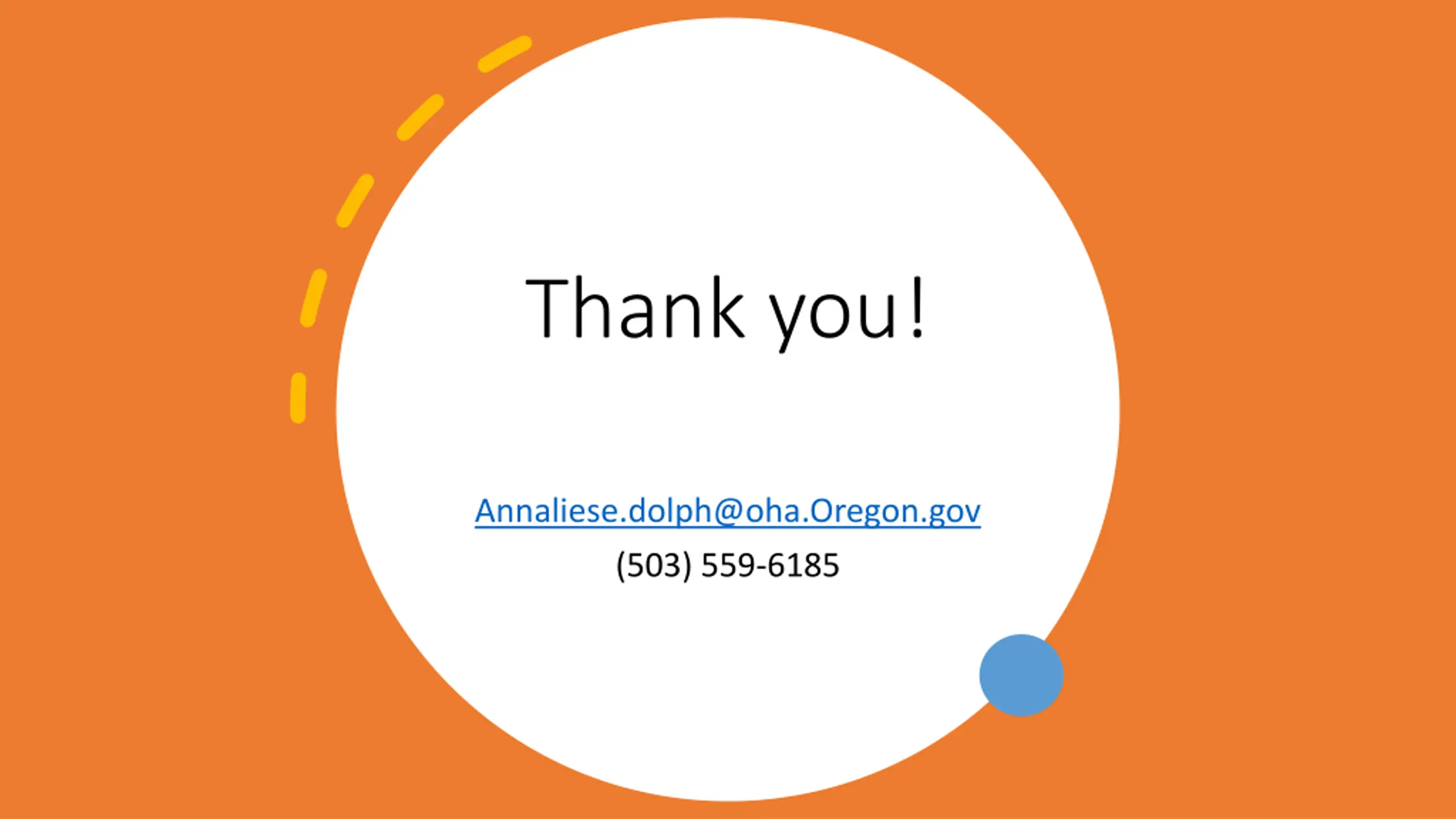 Thank you! Annaliese.dolph@oha.Oregon.gov (503) 559-6185