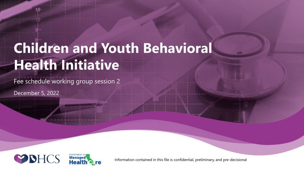 Children and Youth Behavioral Health Initiative Fee schedule working group session 2 December 5, 2022 Information contained in this file is confidential, preliminary, and pre-decisional