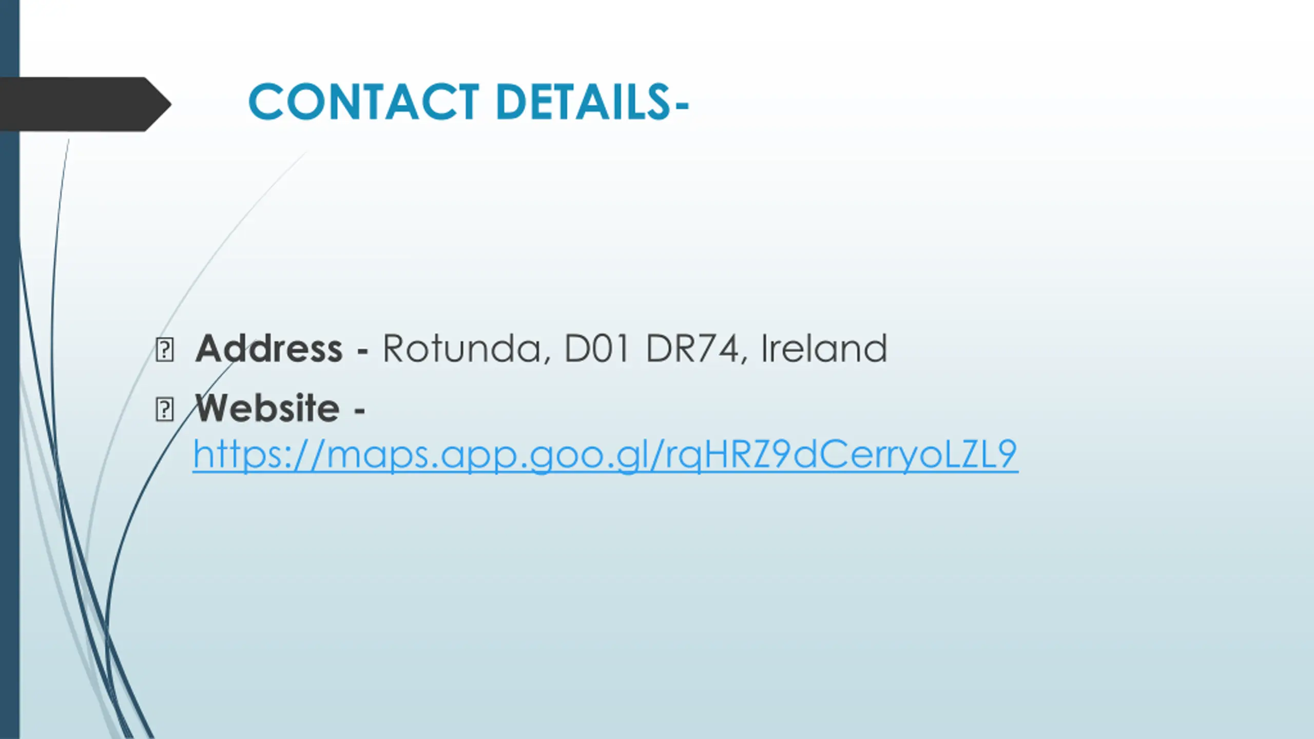 CONTACT DETAILS- ? Address - Rotunda, D01 DR74, Ireland ? Website - https://maps.app.goo.gl/rqHRZ9dCerryoLZL9