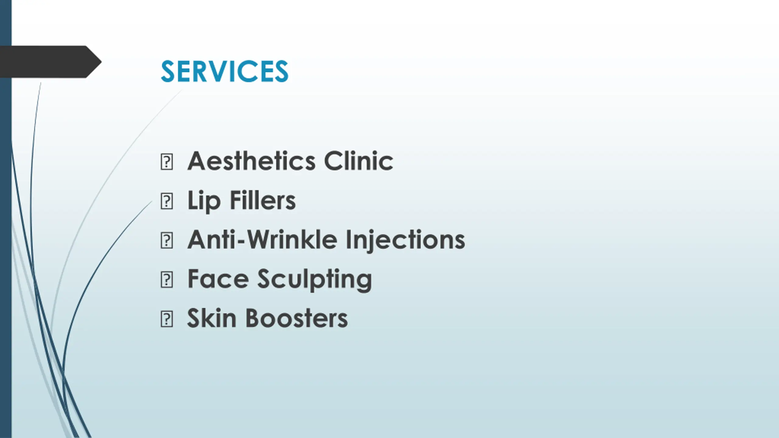 SERVICES ? Aesthetics Clinic ? Lip Fillers ? Anti-Wrinkle Injections ? Face Sculpting ? Skin Boosters