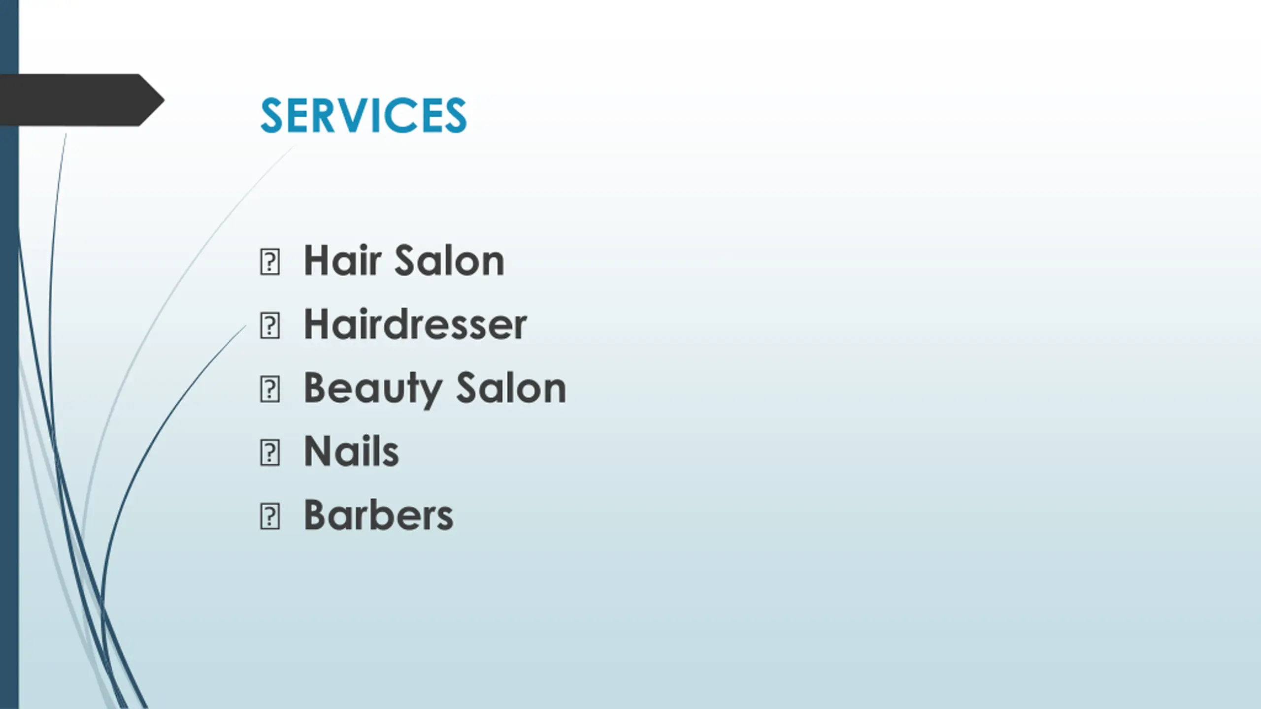 SERVICES ? Hair Salon ? Hairdresser ? Beauty Salon ? Nails ? Barbers