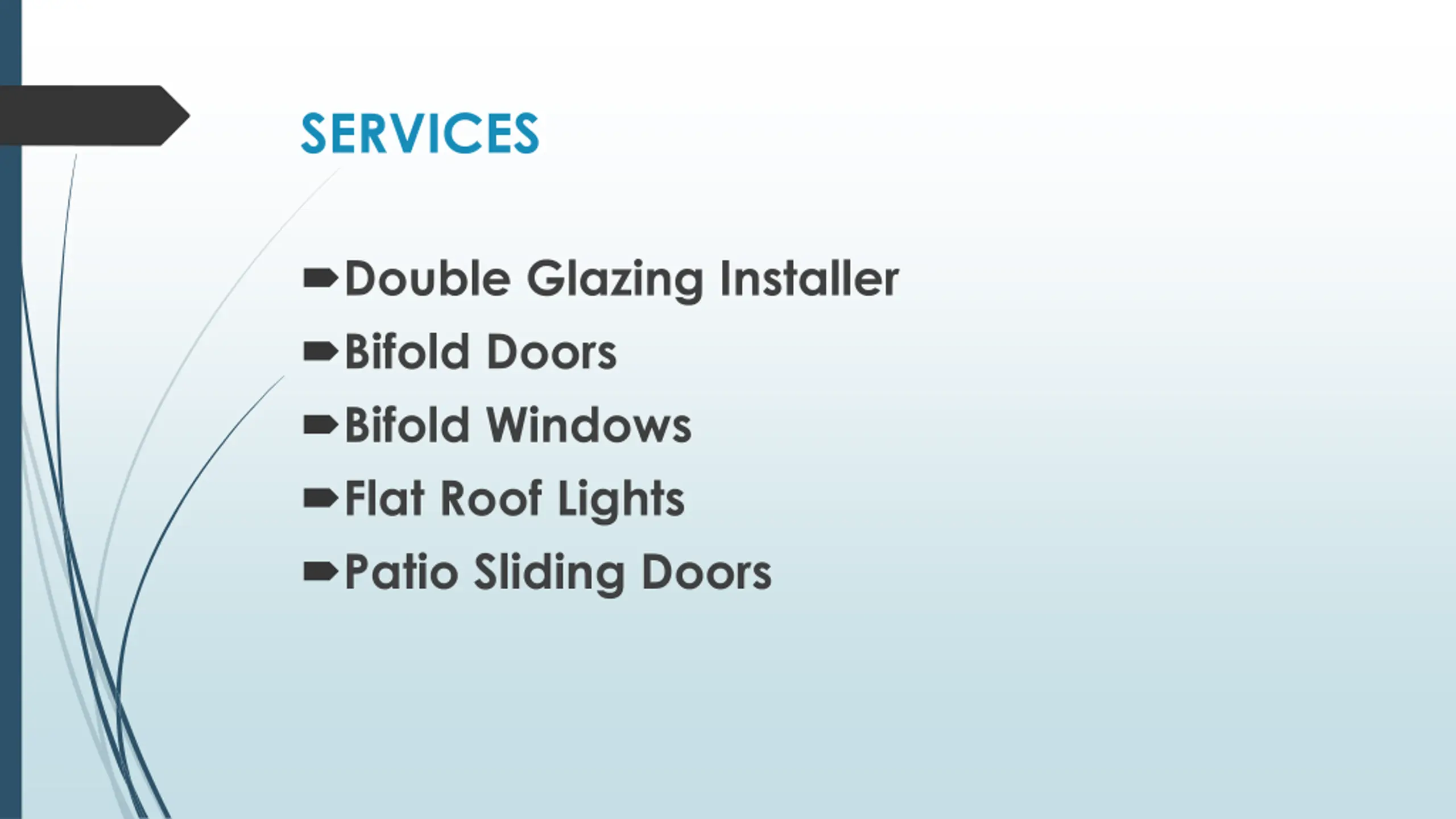 SERVICES Double Glazing Installer Bifold Doors Bifold Windows Flat Roof Lights Patio Sliding Doors