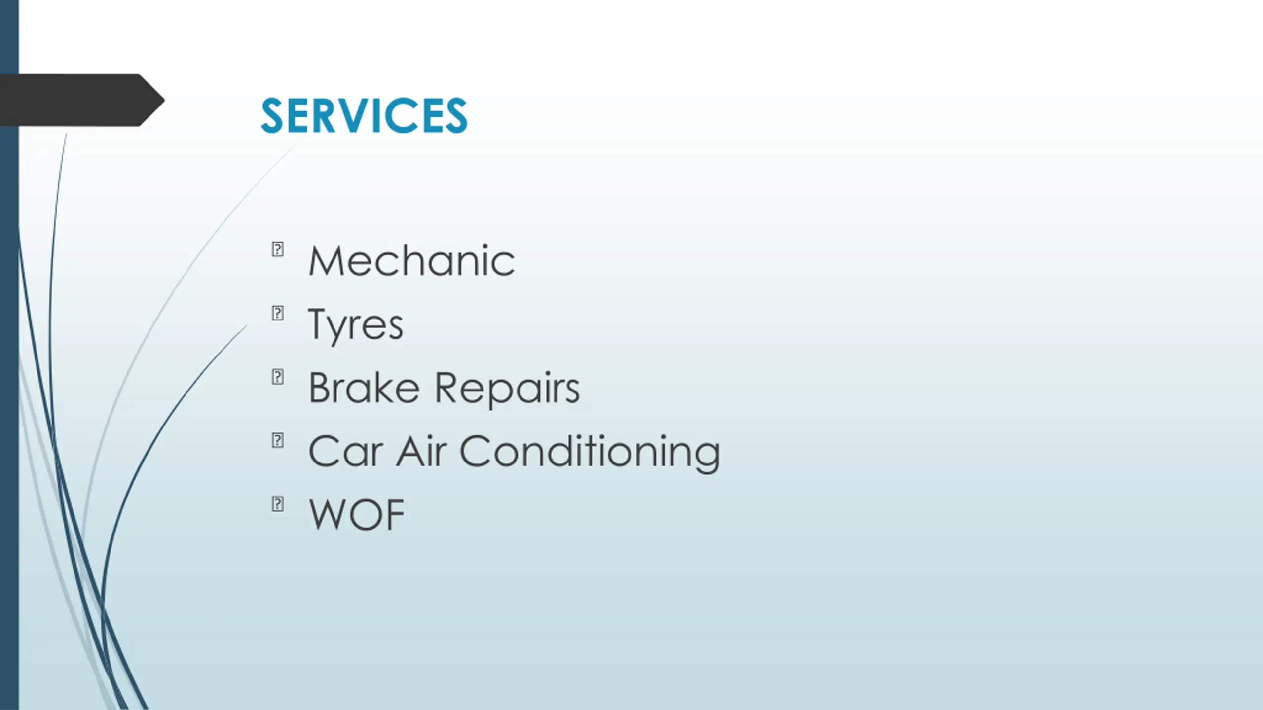 SERVICES ?Mechanic ?Tyres ?Brake Repairs ?Car Air Conditioning ?WOF