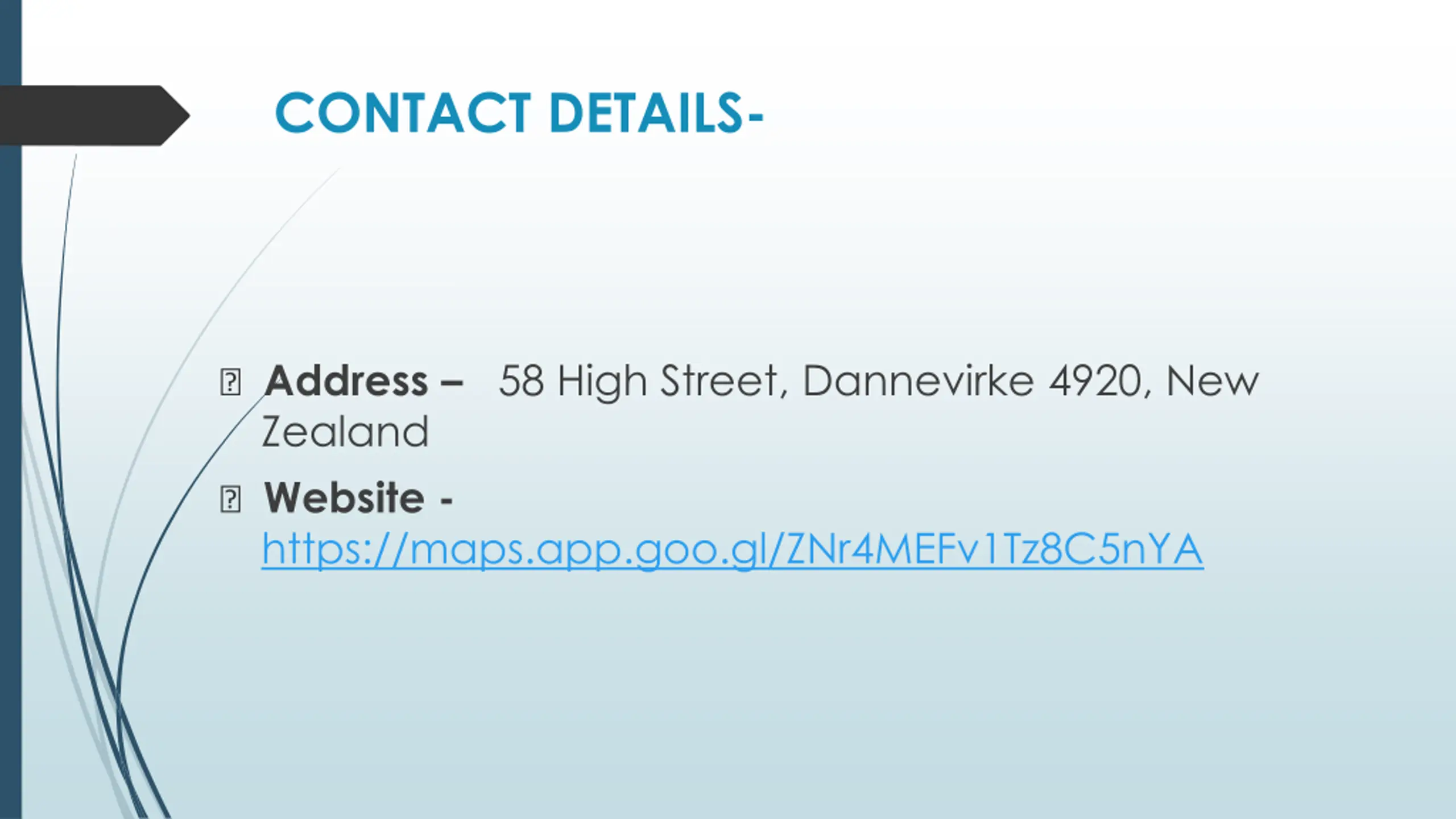 5. CONTACT DETAILS- ? Address 58 High Street, Dannevirke 4920, New Zealand ? Website - https://maps.app.goo.gl/ZNr4MEFv1Tz8C5nYA