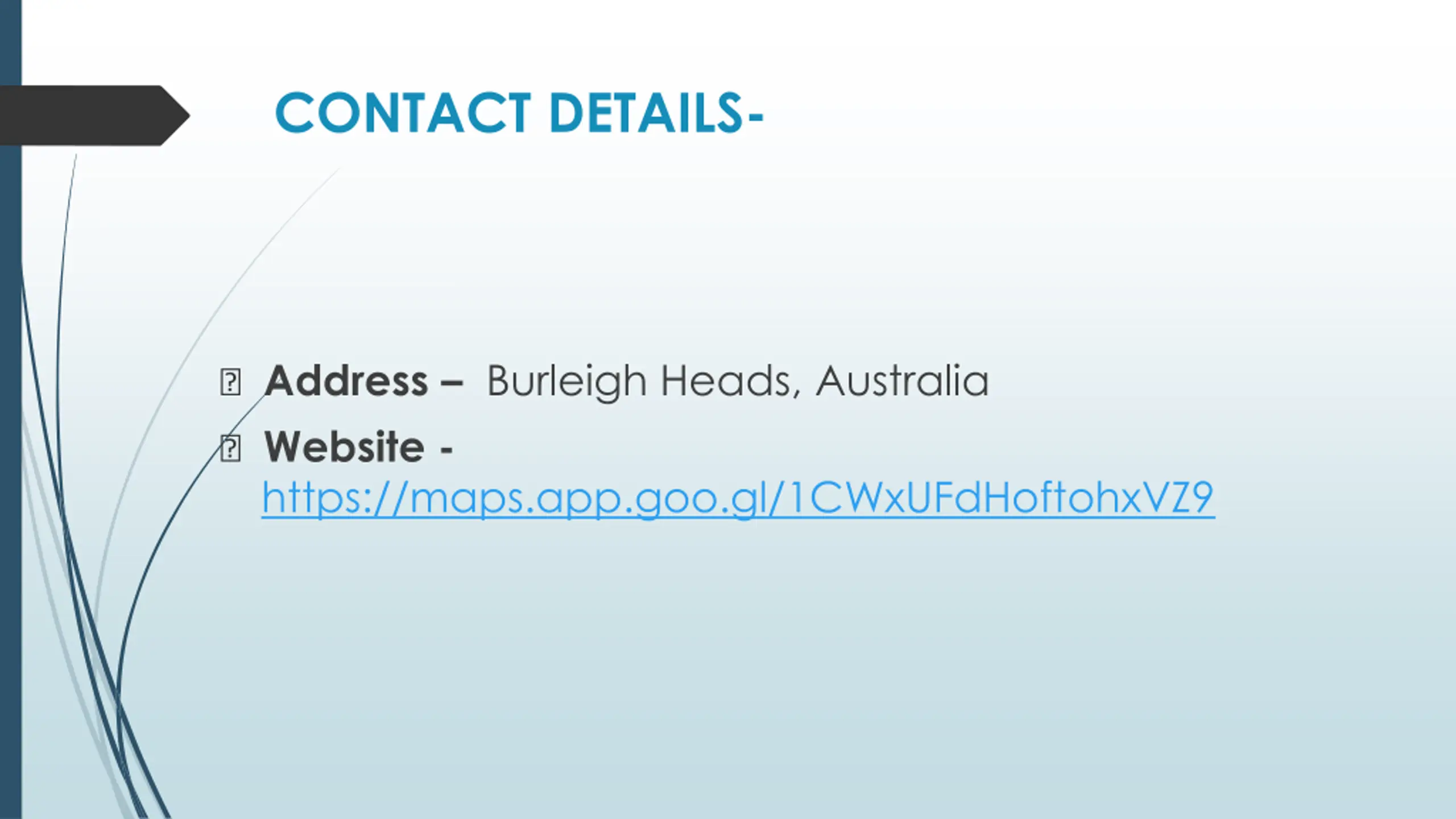 CONTACT DETAILS- ? Address Burleigh Heads, Australia ? Website - https://maps.app.goo.gl/1CWxUFdHoftohxVZ9