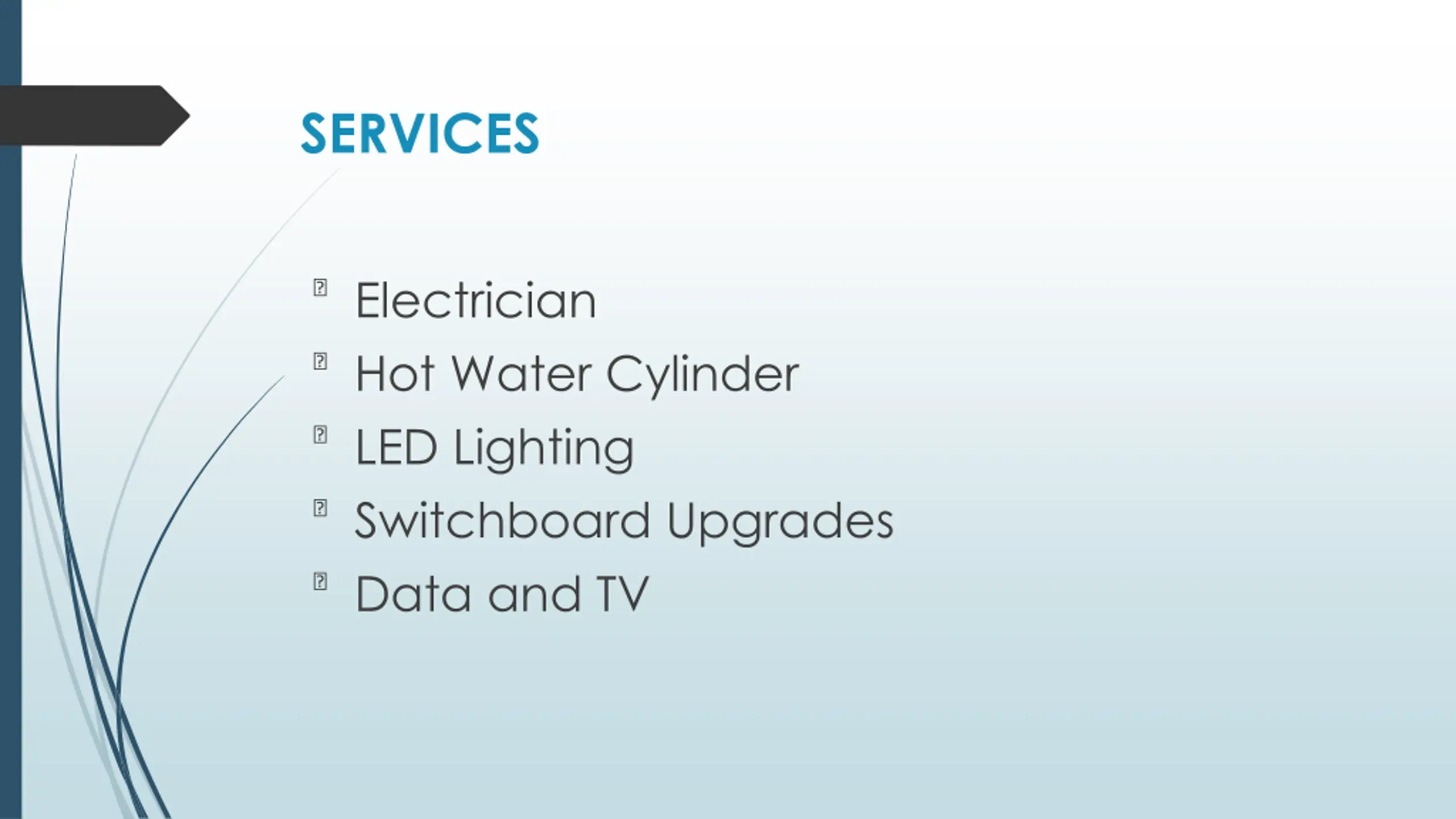 SERVICES ?Electrician ?Hot Water Cylinder ?LED Lighting ?Switchboard Upgrades ?Data and TV