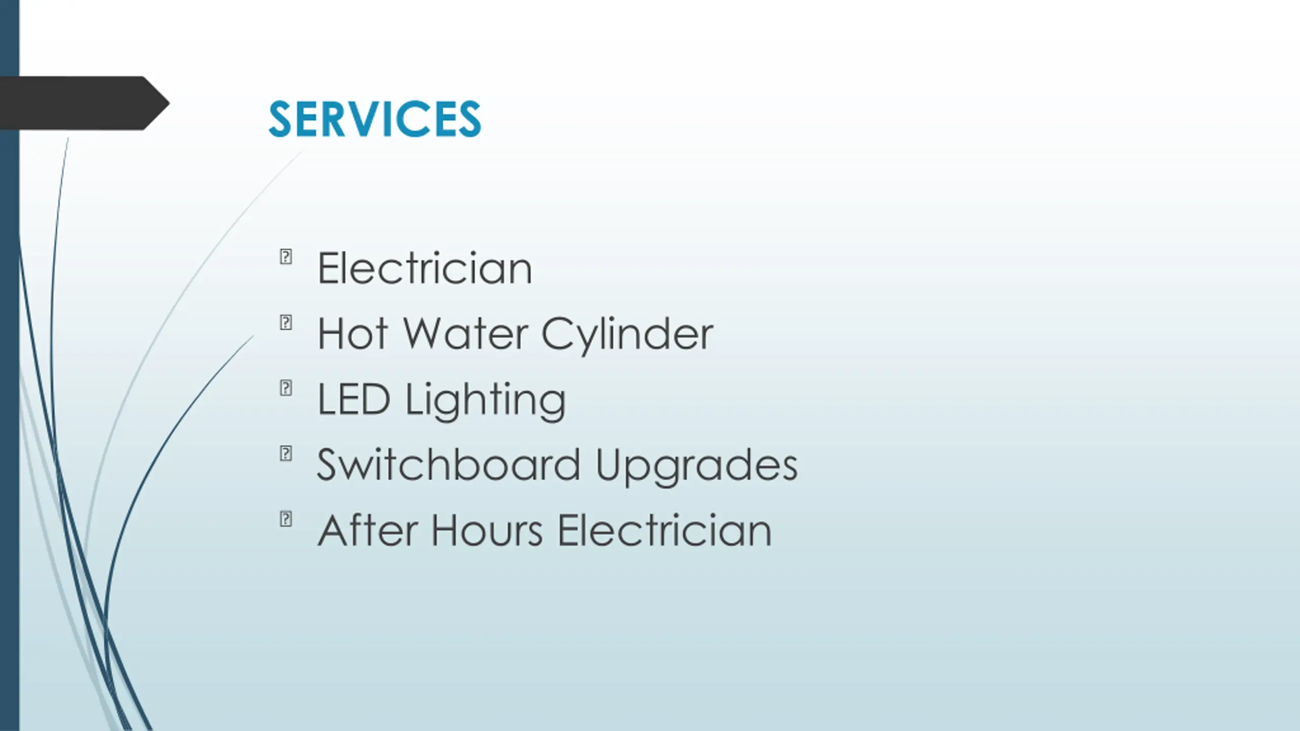 SERVICES ?Electrician ?Hot Water Cylinder ?LED Lighting ?Switchboard Upgrades ?After Hours Electrician