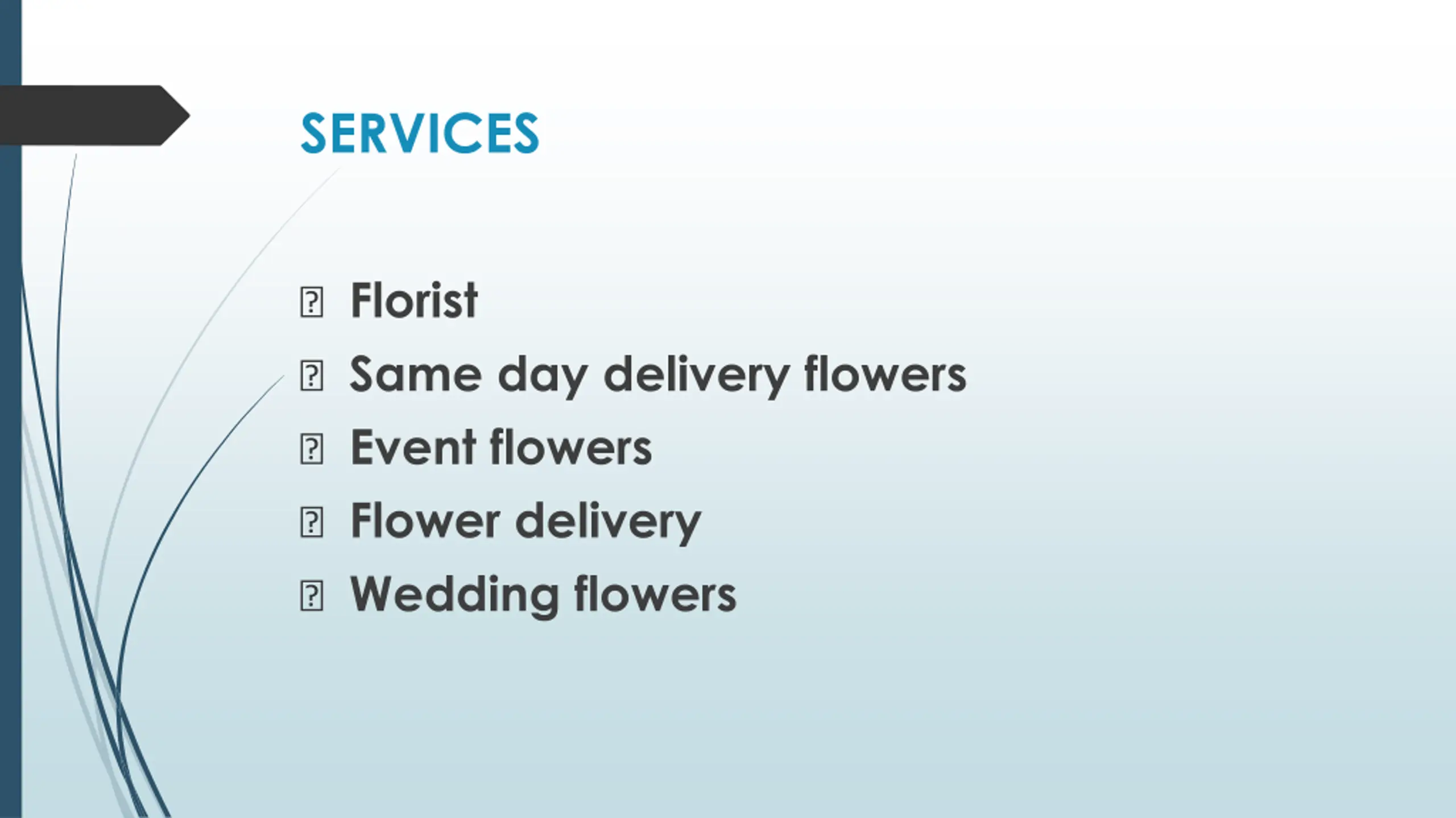 SERVICES ? Florist ? Same day delivery flowers ? Event flowers ? Flower delivery ? Wedding flowers