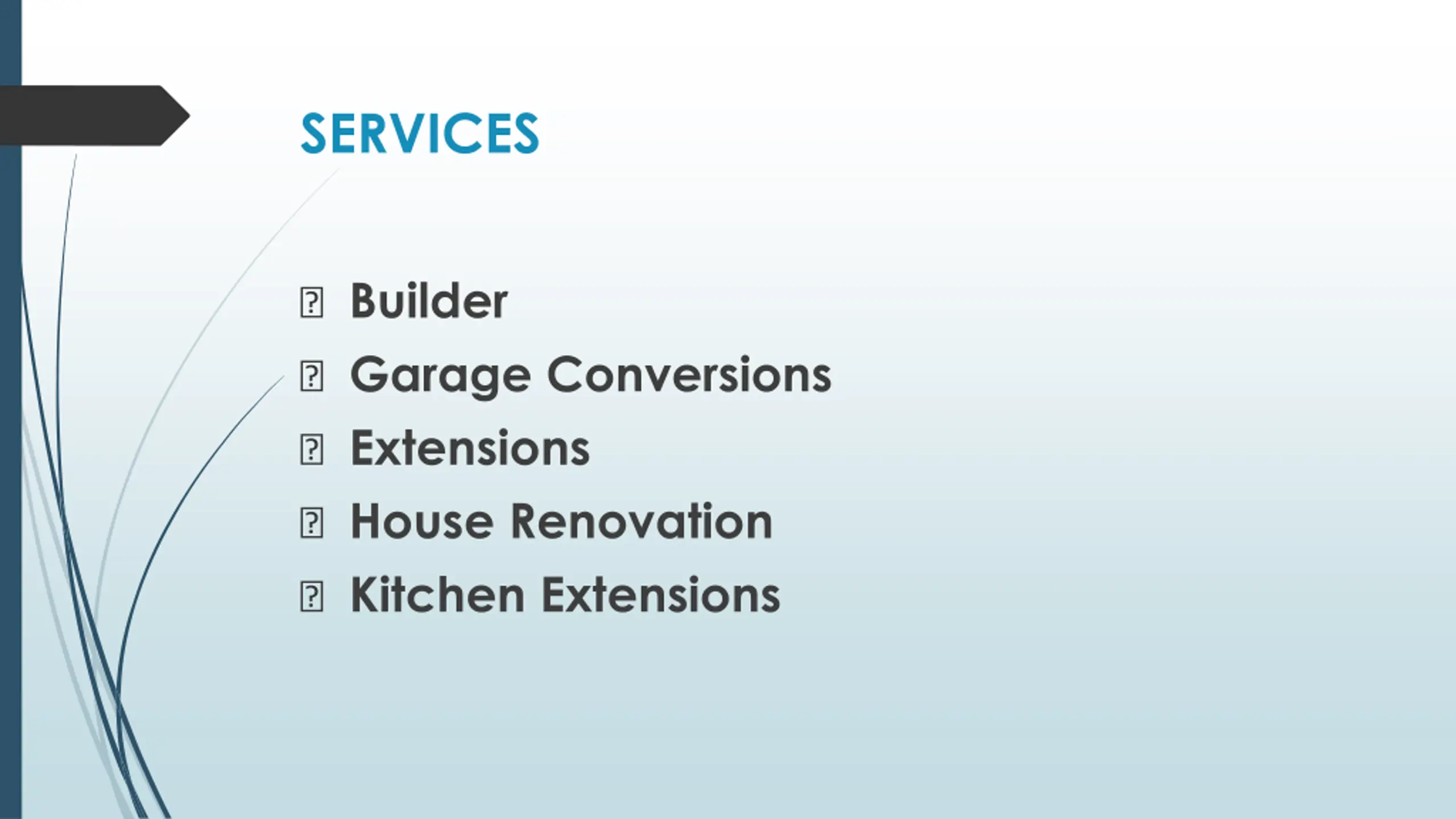SERVICES ? Builder ? Garage Conversions ? Extensions ? House Renovation ? Kitchen Extensions
