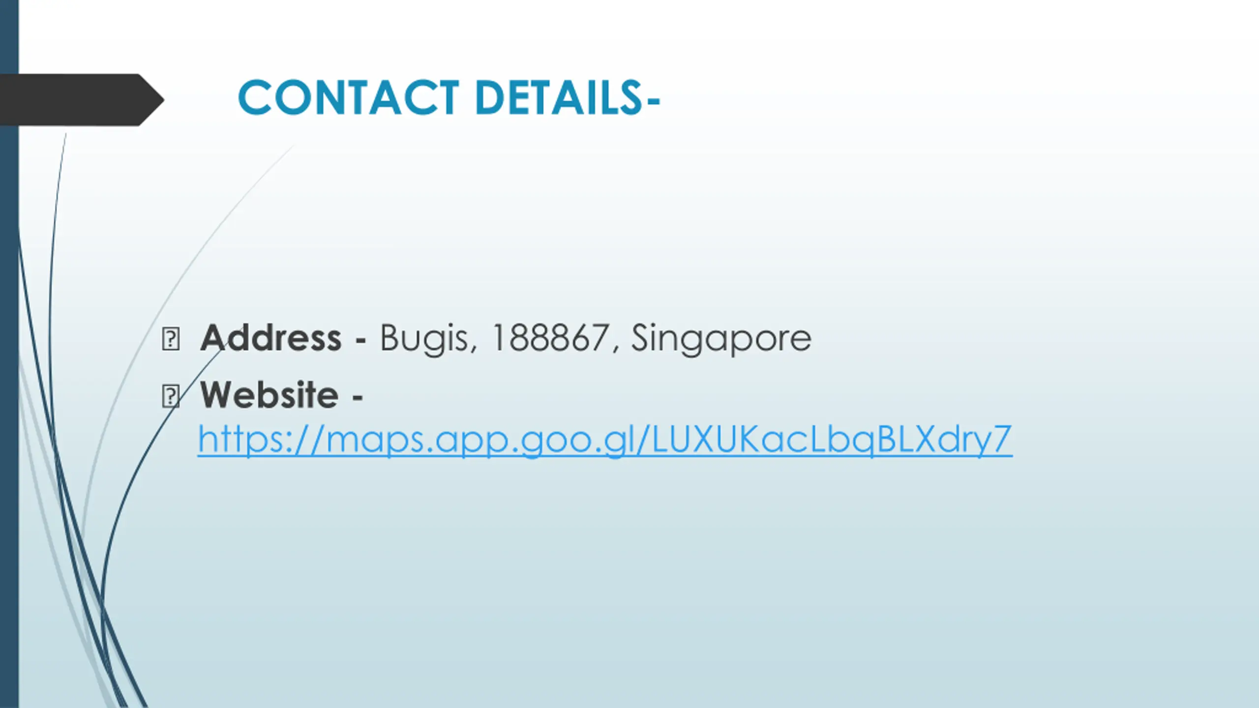 CONTACT DETAILS- ? Address - Bugis, 188867, Singapore ? Website - https://maps.app.goo.gl/LUXUKacLbqBLXdry7