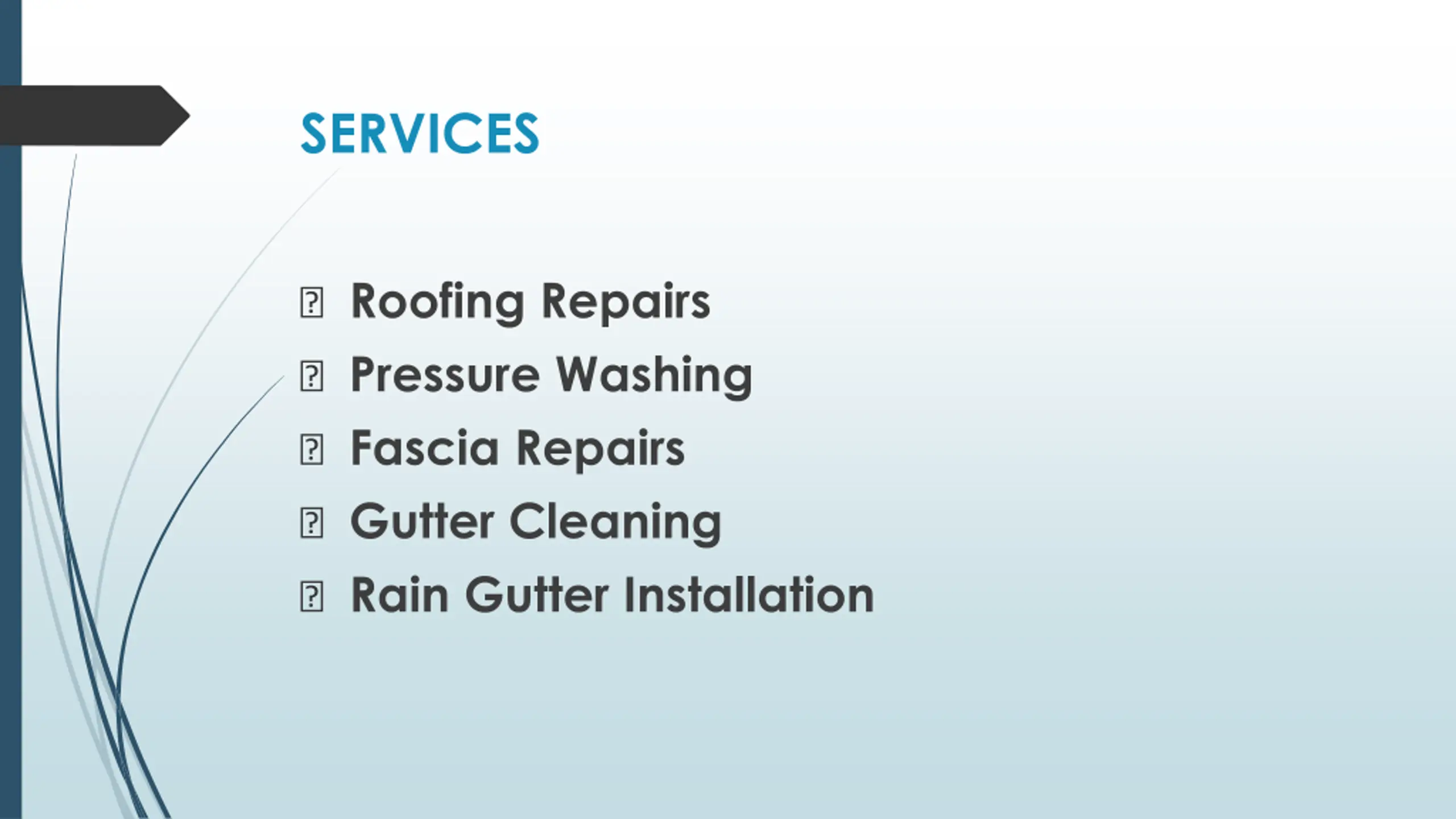 SERVICES ? Roofing Repairs ? Pressure Washing ? Fascia Repairs ? Gutter Cleaning ? Rain Gutter Installation