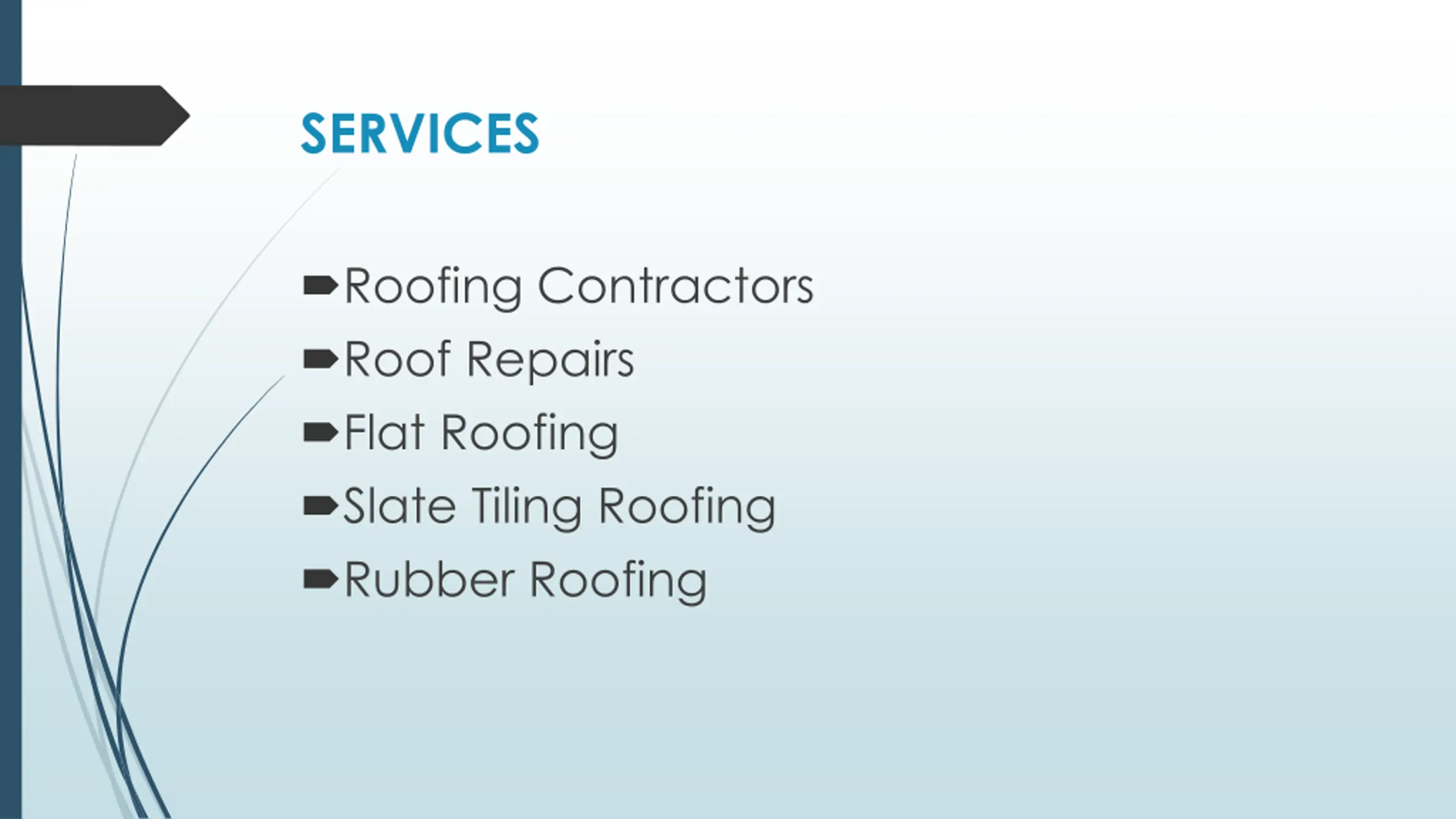 SERVICES Roofing Contractors Roof Repairs Flat Roofing Slate Tiling Roofing Rubber Roofing