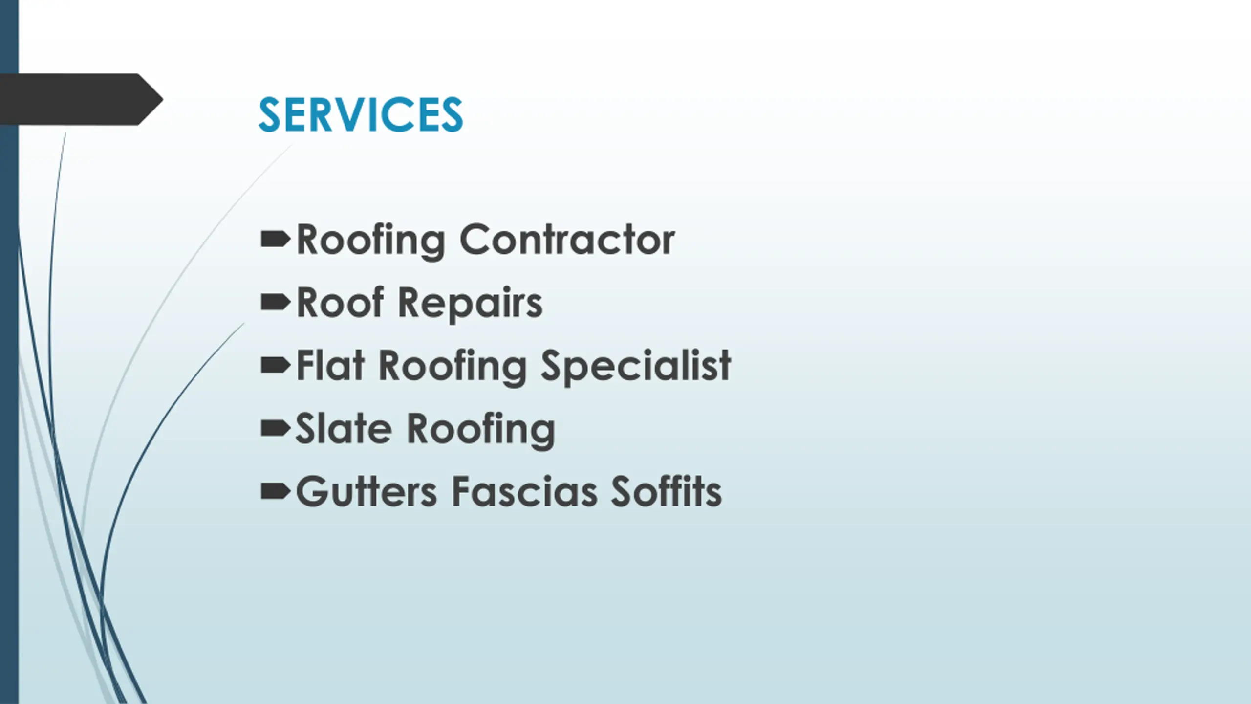SERVICES Roofing Contractor Roof Repairs Flat Roofing Specialist Slate Roofing Gutters Fascias Soffits