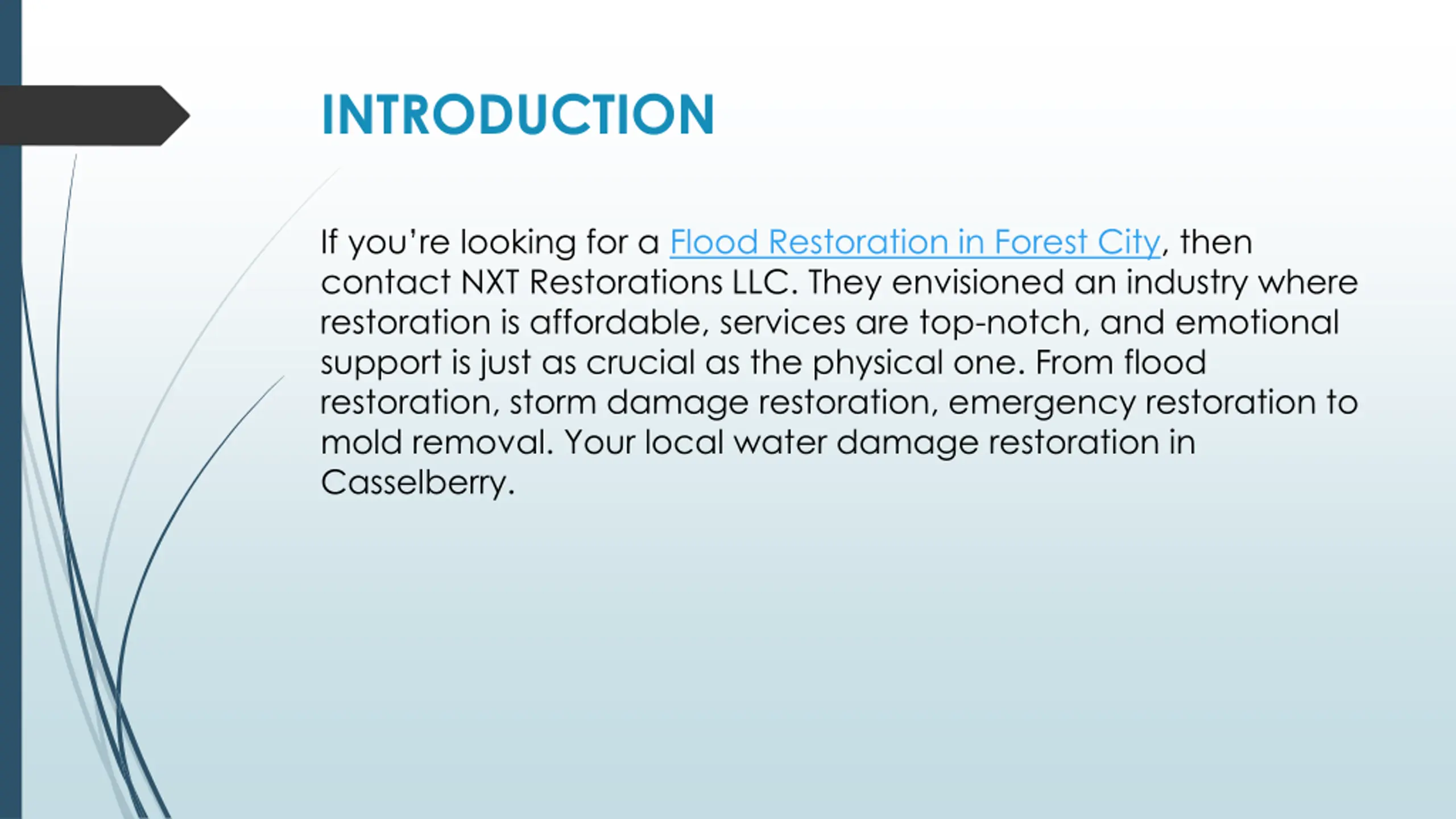 INTRODUCTION If you re looking for a Flood Restoration in Forest City, then contact NXT Restorations LLC. They envisioned an industry where restoration is affordable, services are top-notch, and emotional support is just as crucial as the physical one. From flood restoration, storm damage restoration, emergency restoration to mold removal. Your local water damage restoration in Casselberry.