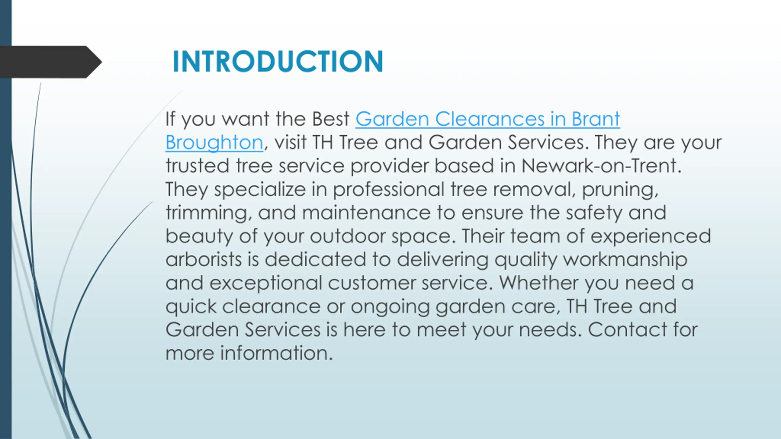 INTRODUCTION If you want the Best Garden Clearances in Brant Broughton, visit TH Tree and Garden Services. They are your trusted tree service provider based in Newark-on-Trent. They specialize in professional tree removal, pruning, trimming, and maintenance to ensure the safety and beauty of your outdoor space. Their team of experienced arborists is dedicated to delivering quality workmanship and exceptional customer service. Whether you need a quick clearance or ongoing garden care, TH Tree and Garden Services is here to meet your needs. Contact for more information.