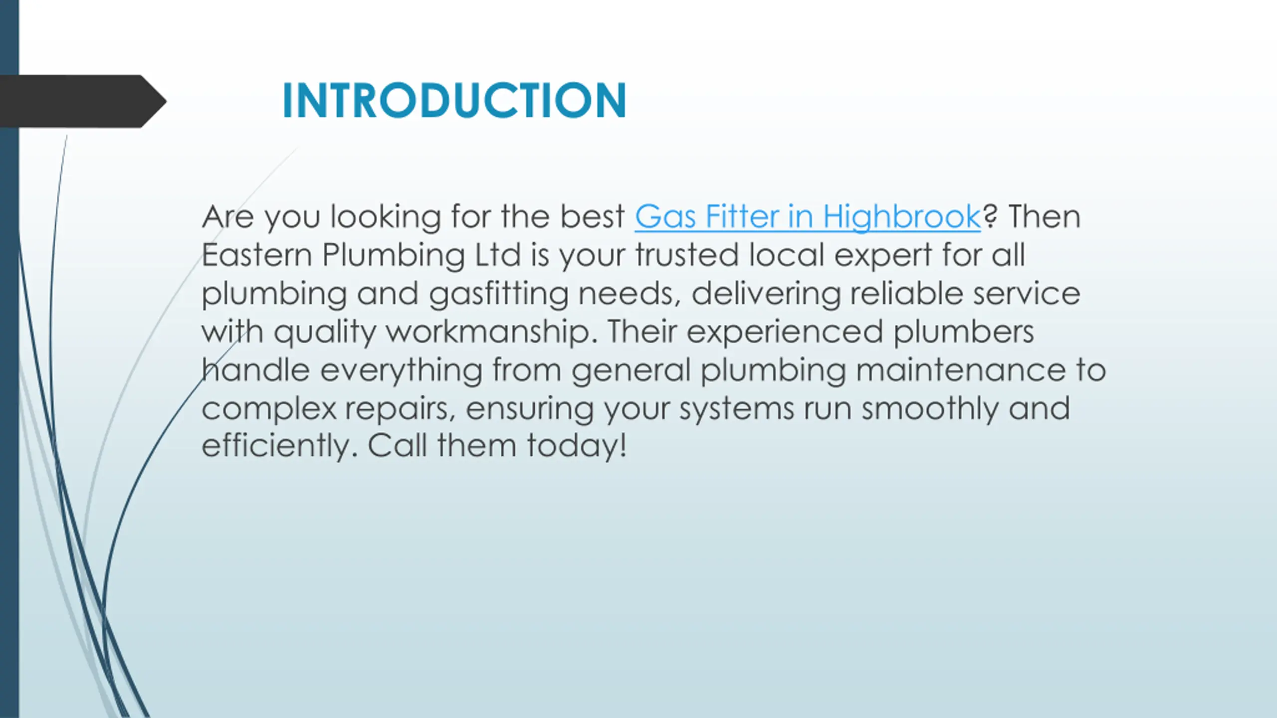 INTRODUCTION Are you looking for the best Gas Fitter in Highbrook? Then Eastern Plumbing Ltd is your trusted local expert for all plumbing and gasfitting needs, delivering reliable service with quality workmanship. Their experienced plumbers handle everything from general plumbing maintenance to complex repairs, ensuring your systems run smoothly and efficiently. Call them today!