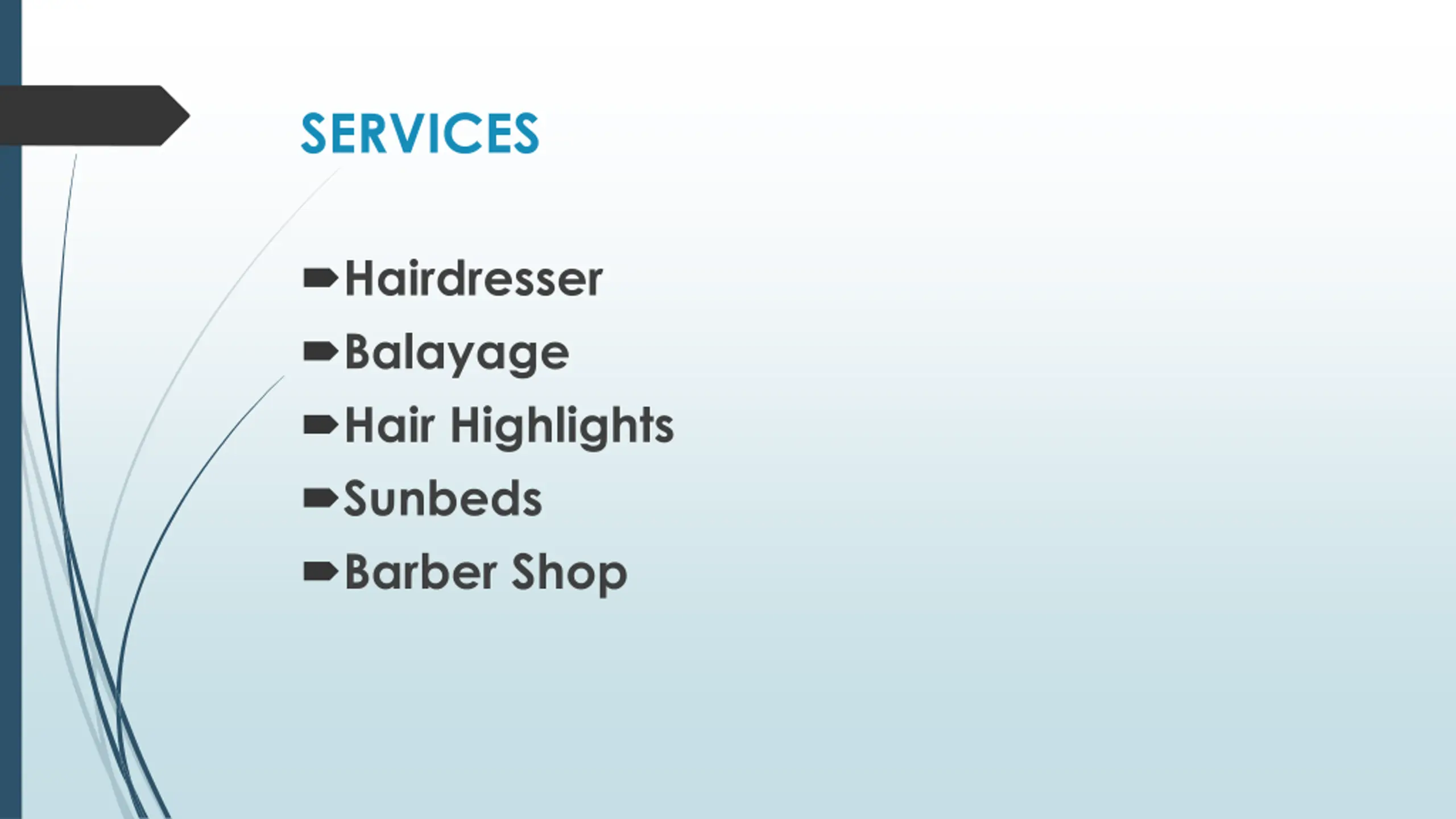 SERVICES Hairdresser Balayage Hair Highlights Sunbeds Barber Shop