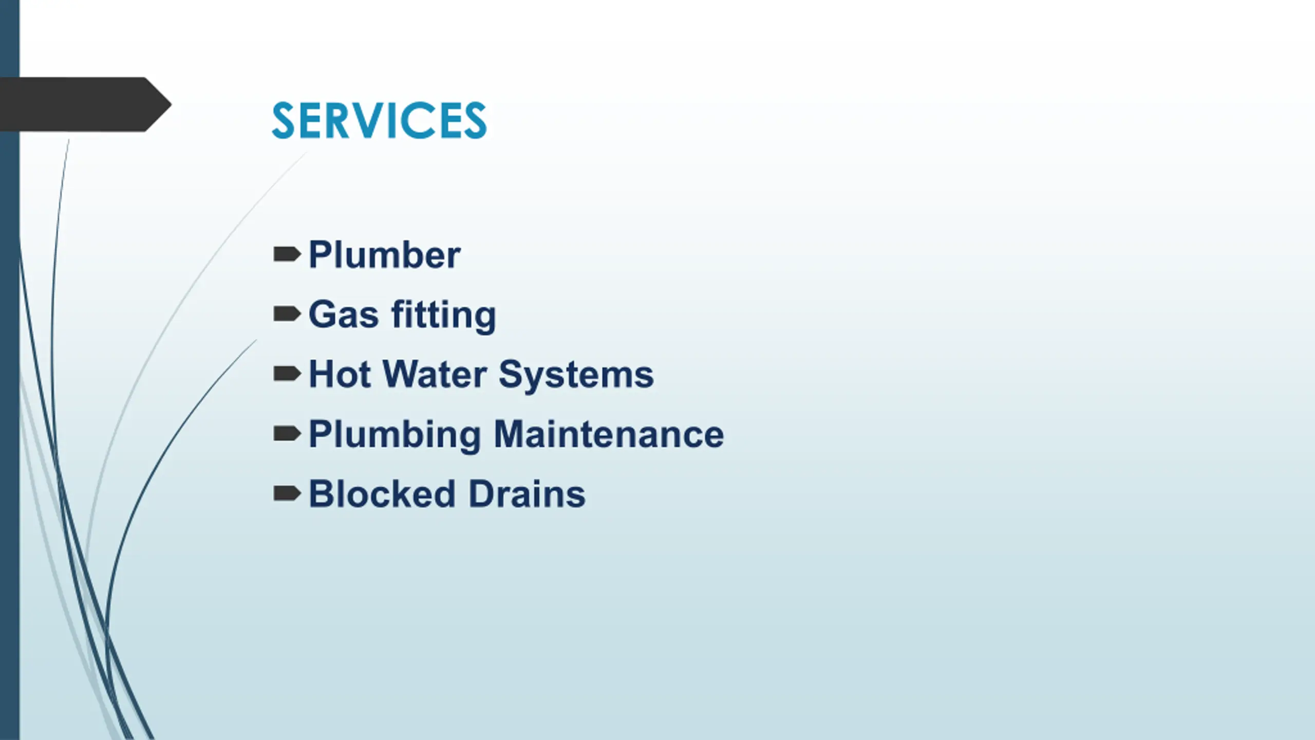 SERVICES Plumber Gas fitting Hot Water Systems Plumbing Maintenance Blocked Drains