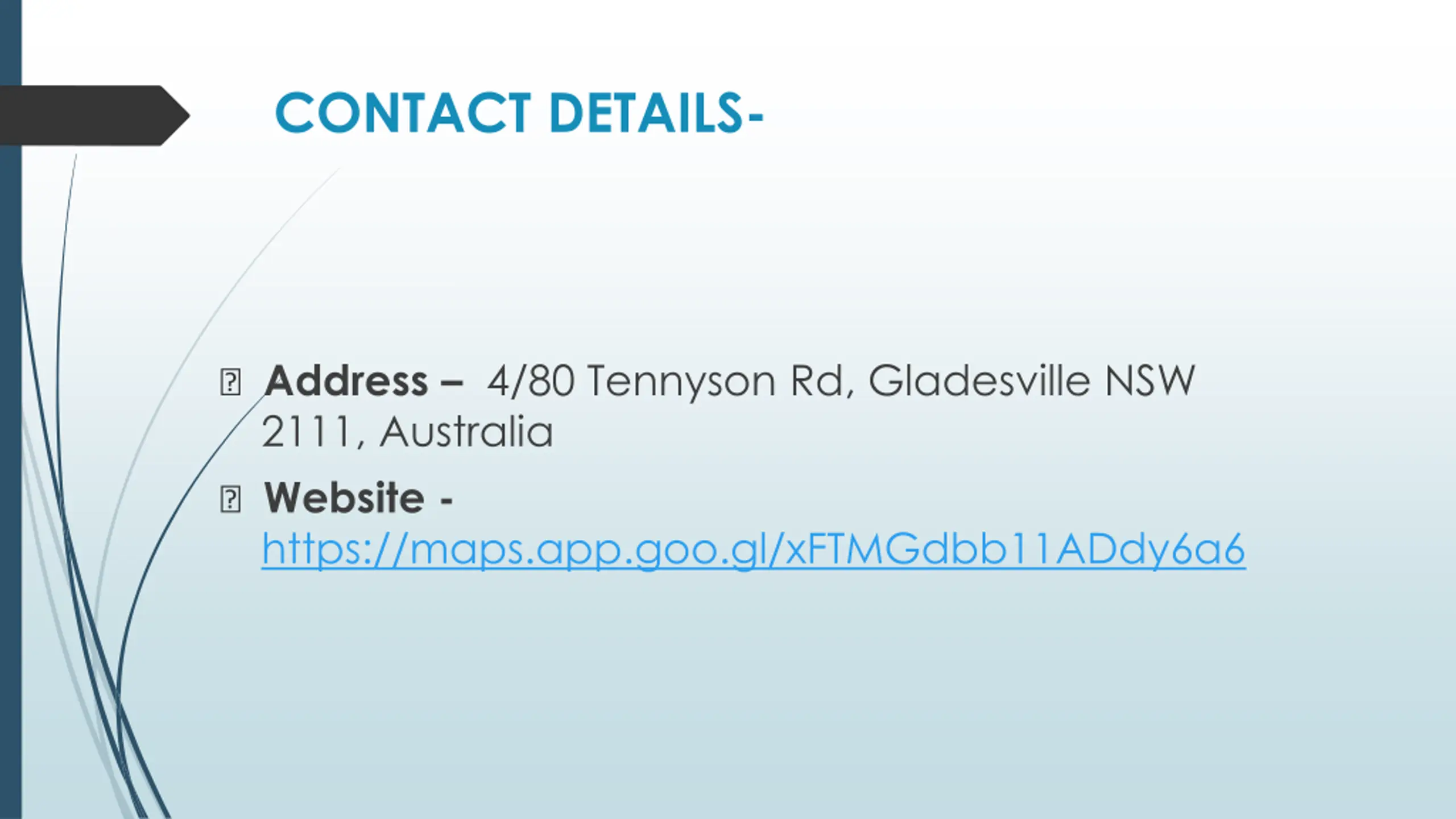 CONTACT DETAILS- ? Address 4/80 Tennyson Rd, Gladesville NSW 2111, Australia ? Website - https://maps.app.goo.gl/xFTMGdbb11ADdy6a6
