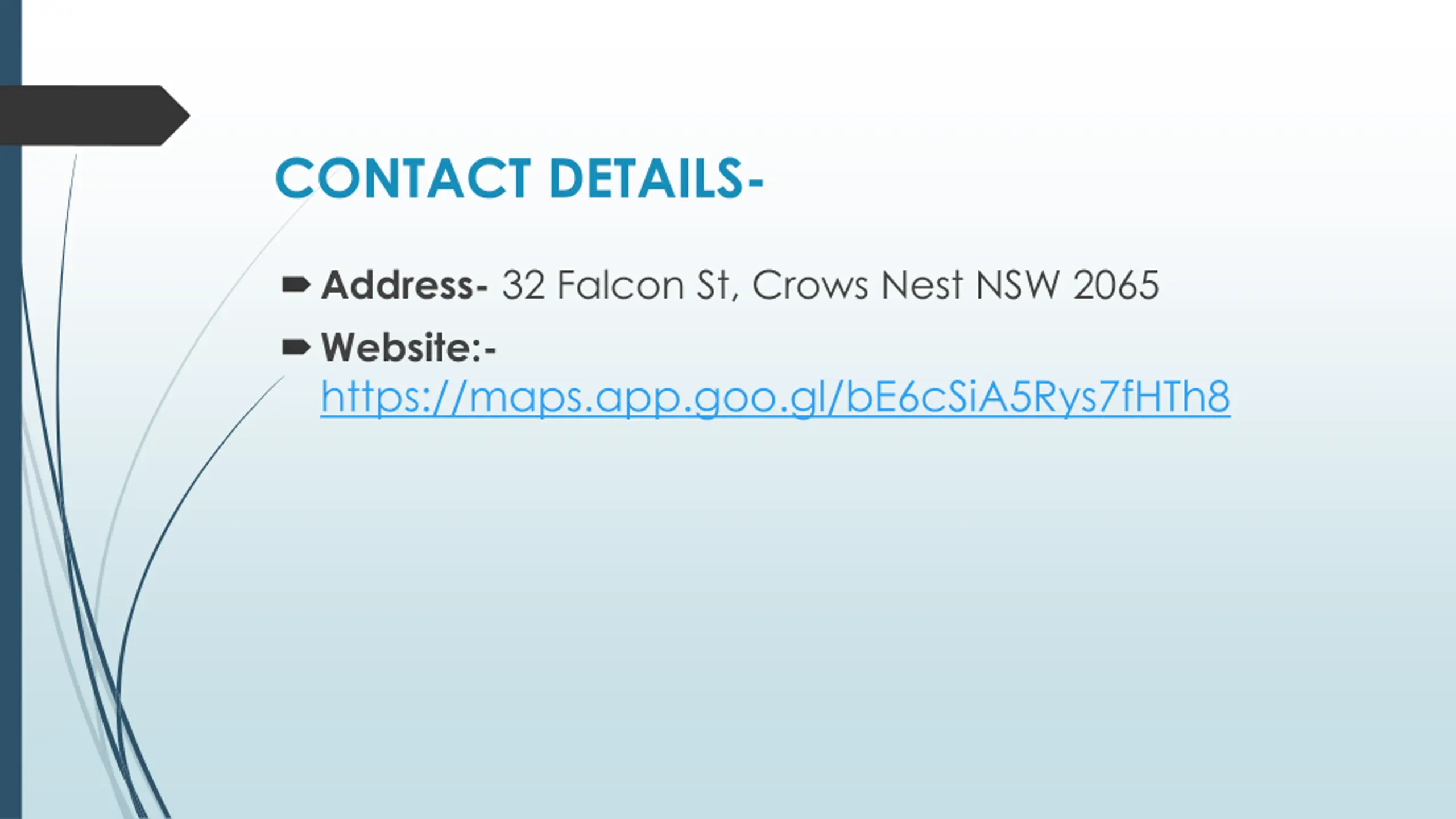 CONTACT DETAILS- Address- 32 Falcon St, Crows Nest NSW 2065 Website:- https://maps.app.goo.gl/bE6cSiA5Rys7fHTh8