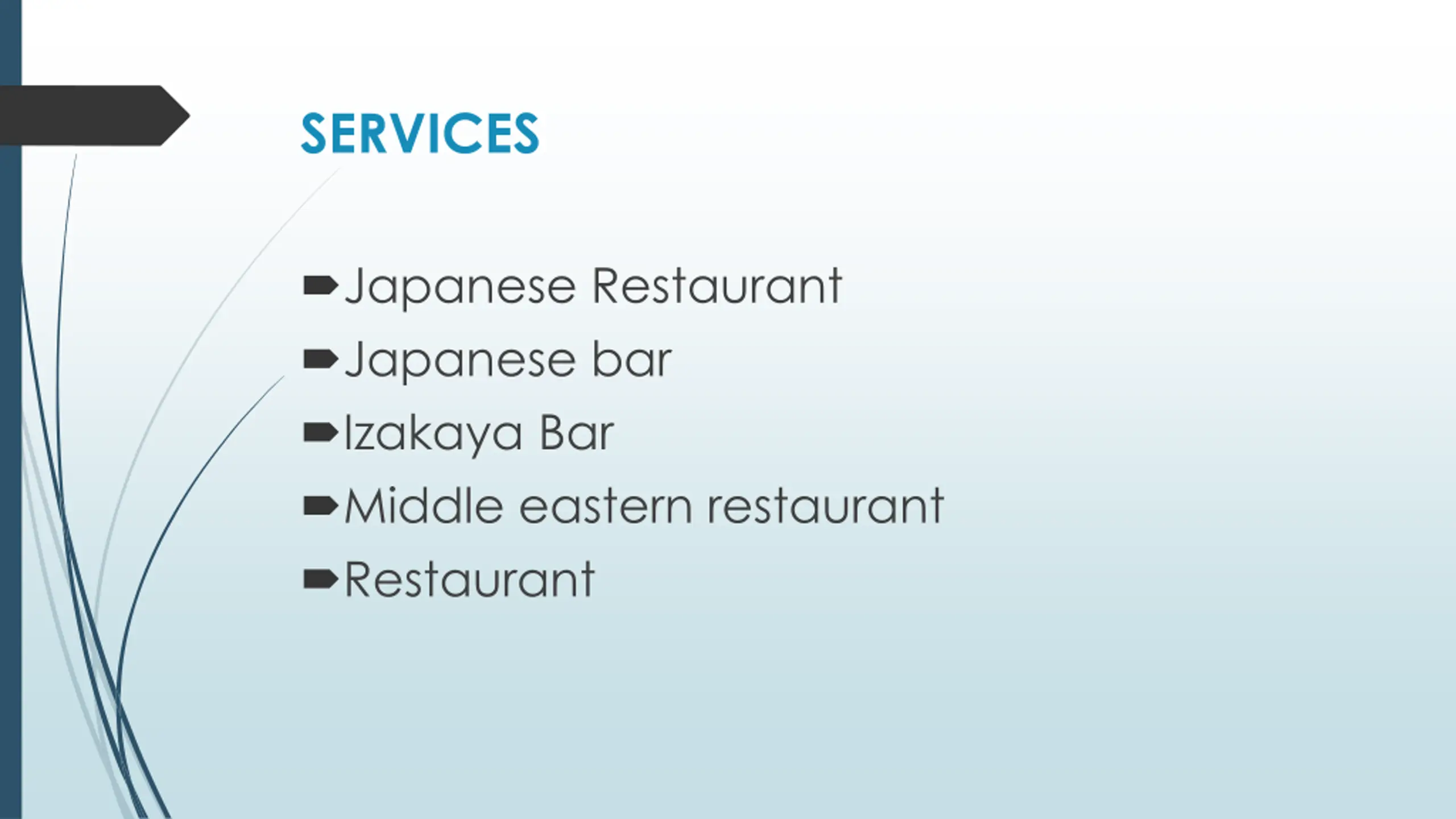 SERVICES Japanese Restaurant Japanese bar Izakaya Bar Middle eastern restaurant Restaurant