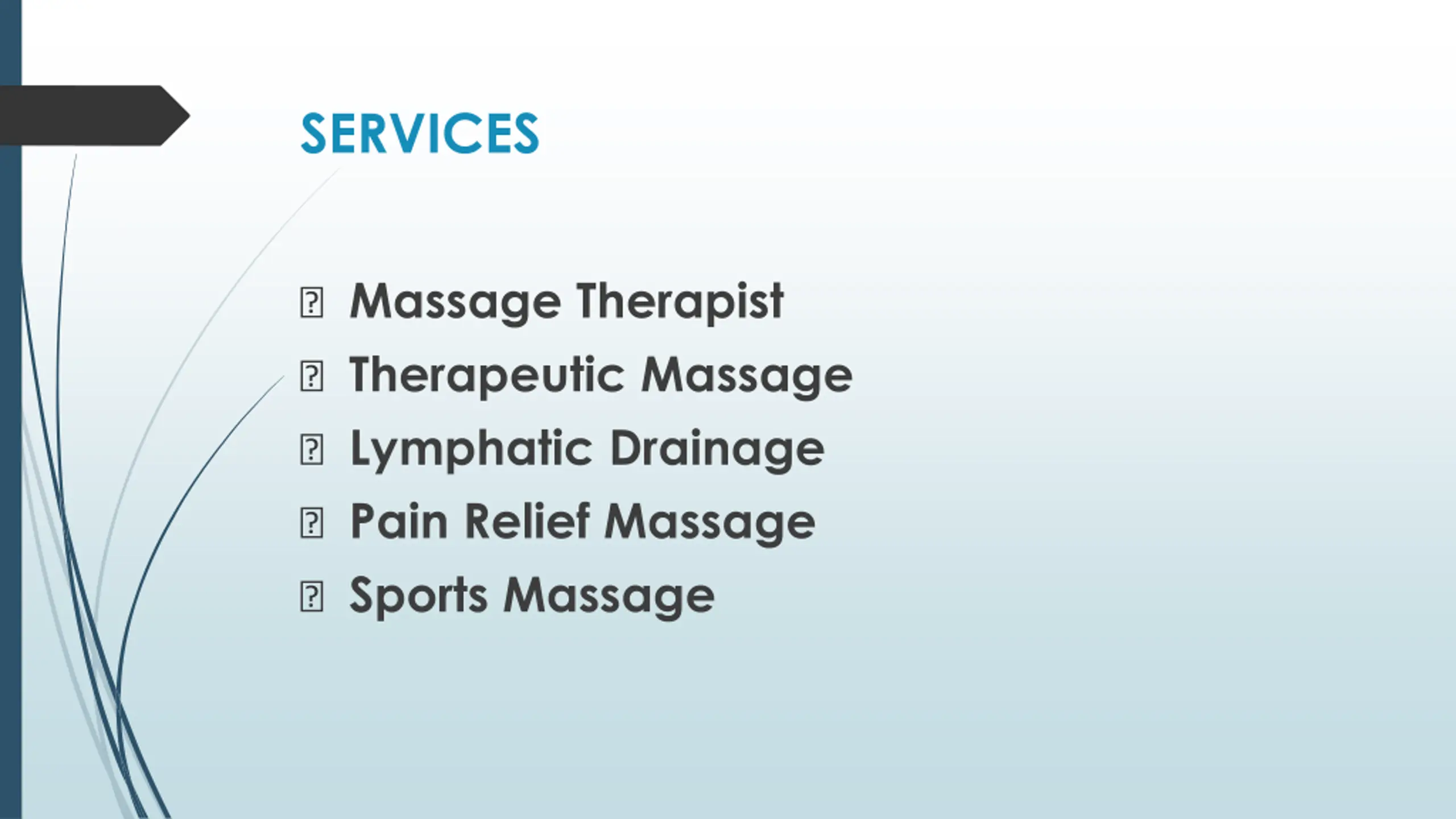 SERVICES ? Massage Therapist ? Therapeutic Massage ? Lymphatic Drainage ? Pain Relief Massage ? Sports Massage
