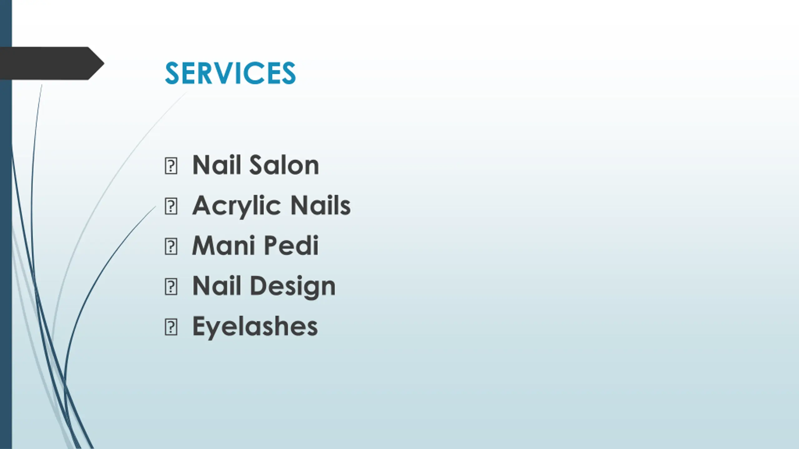 SERVICES ? Nail Salon ? Acrylic Nails ? Mani Pedi ? Nail Design ? Eyelashes