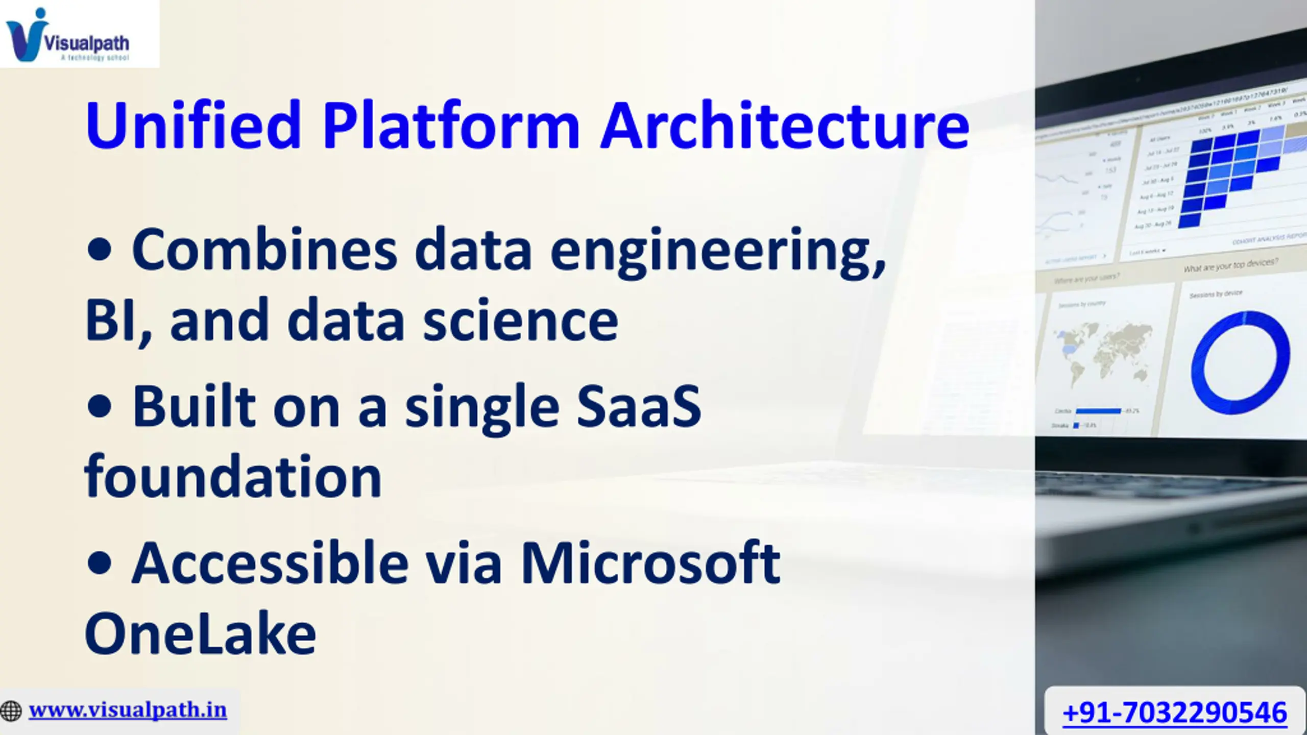 Unified Platform Architecture Combines data engineering, BI, and data science Built on a single SaaS foundation Accessible via Microsoft OneLake +91-7032290546
