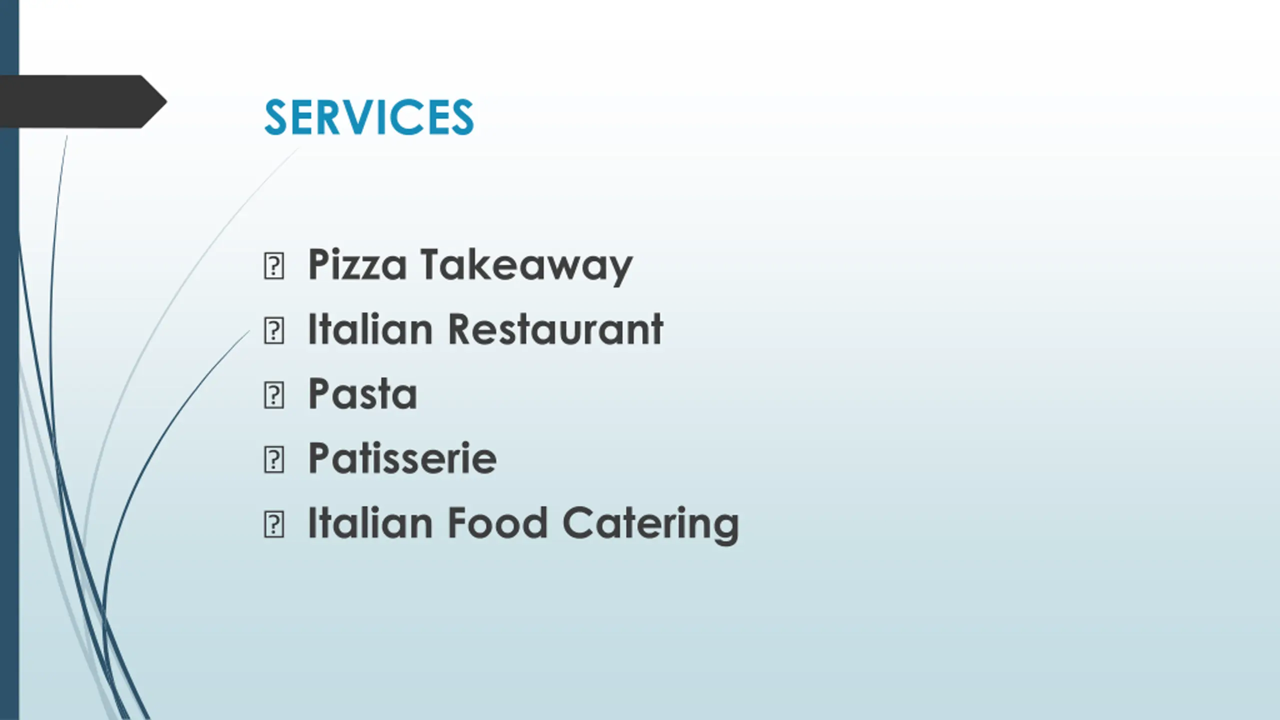 SERVICES ? Pizza Takeaway ? Italian Restaurant ? Pasta ? Patisserie ? Italian Food Catering