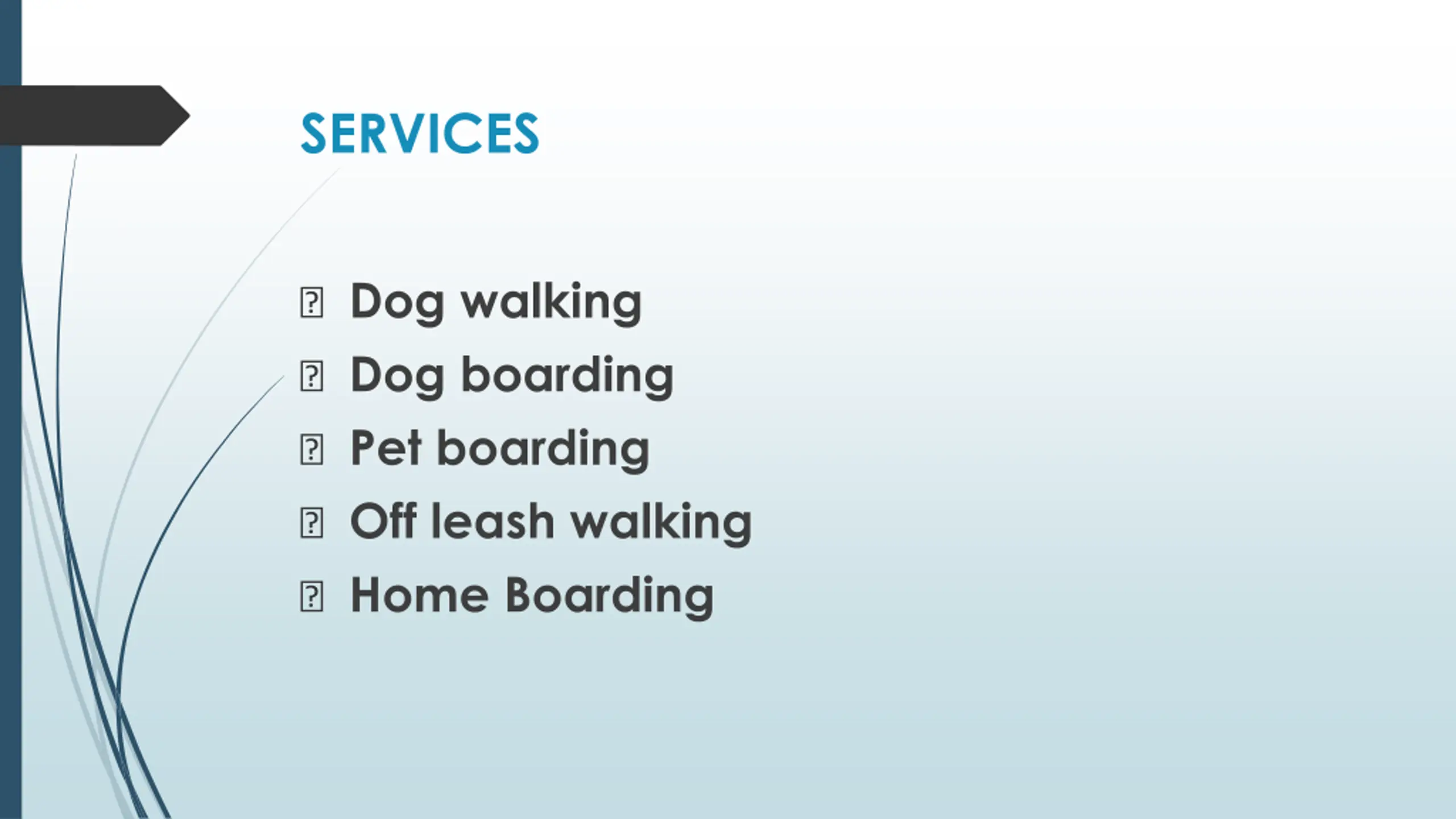 SERVICES ? Dog walking ? Dog boarding ? Pet boarding ? Off leash walking ? Home Boarding