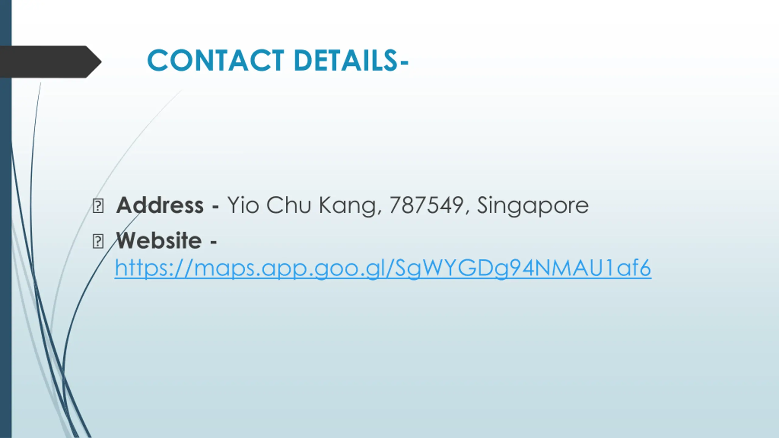 CONTACT DETAILS- ? Address - Yio Chu Kang, 787549, Singapore ? Website - https://maps.app.goo.gl/SgWYGDg94NMAU1af6